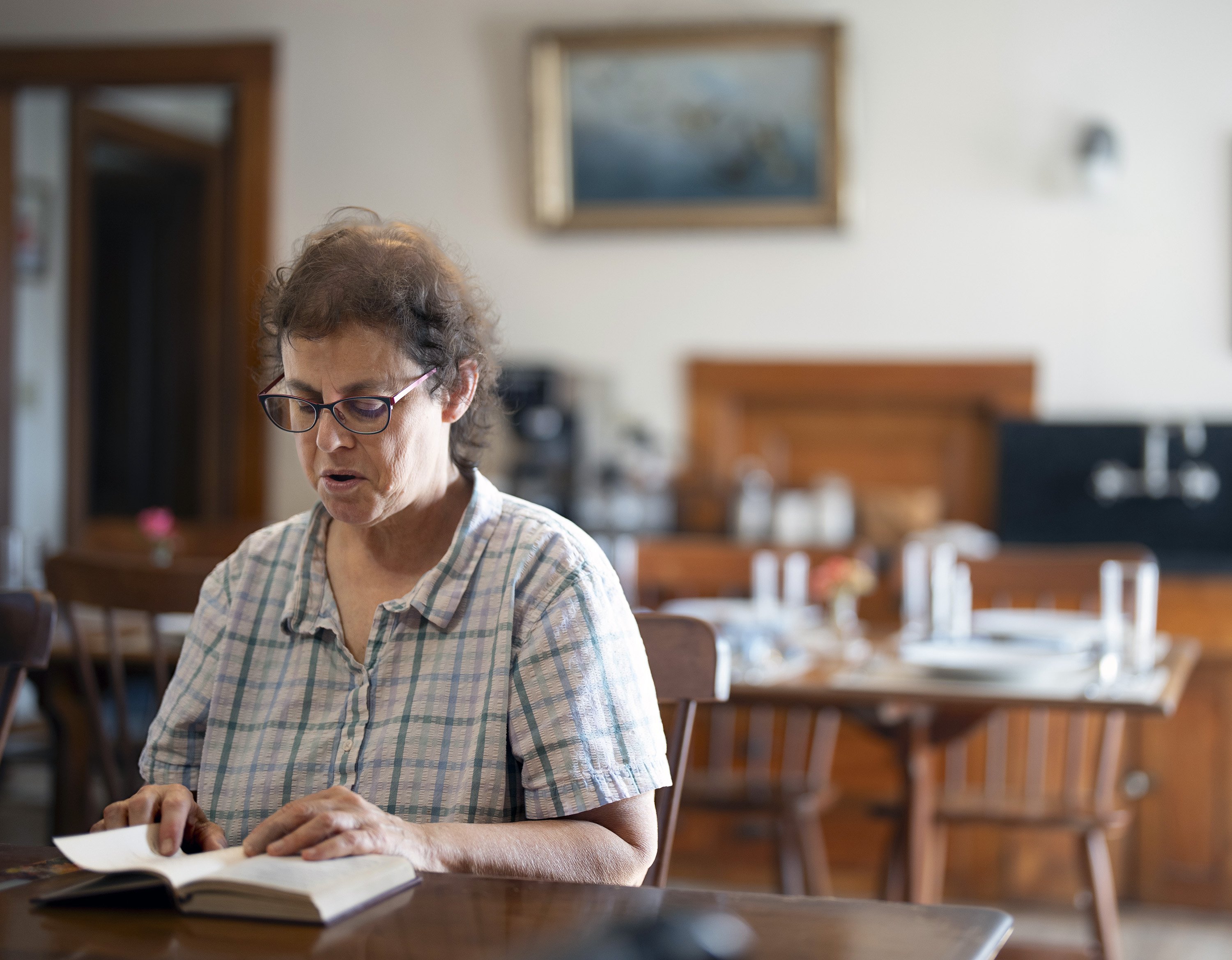 “It struck me that I fit in without trying. I could simply just be me,” Sister April said while sitting in the music room, surrounded by portraits of the Shakers who came before her. “I was really moved by the fact that the people here are just ordinary people. Everybody’s unpretentious, quirky and kind.”
