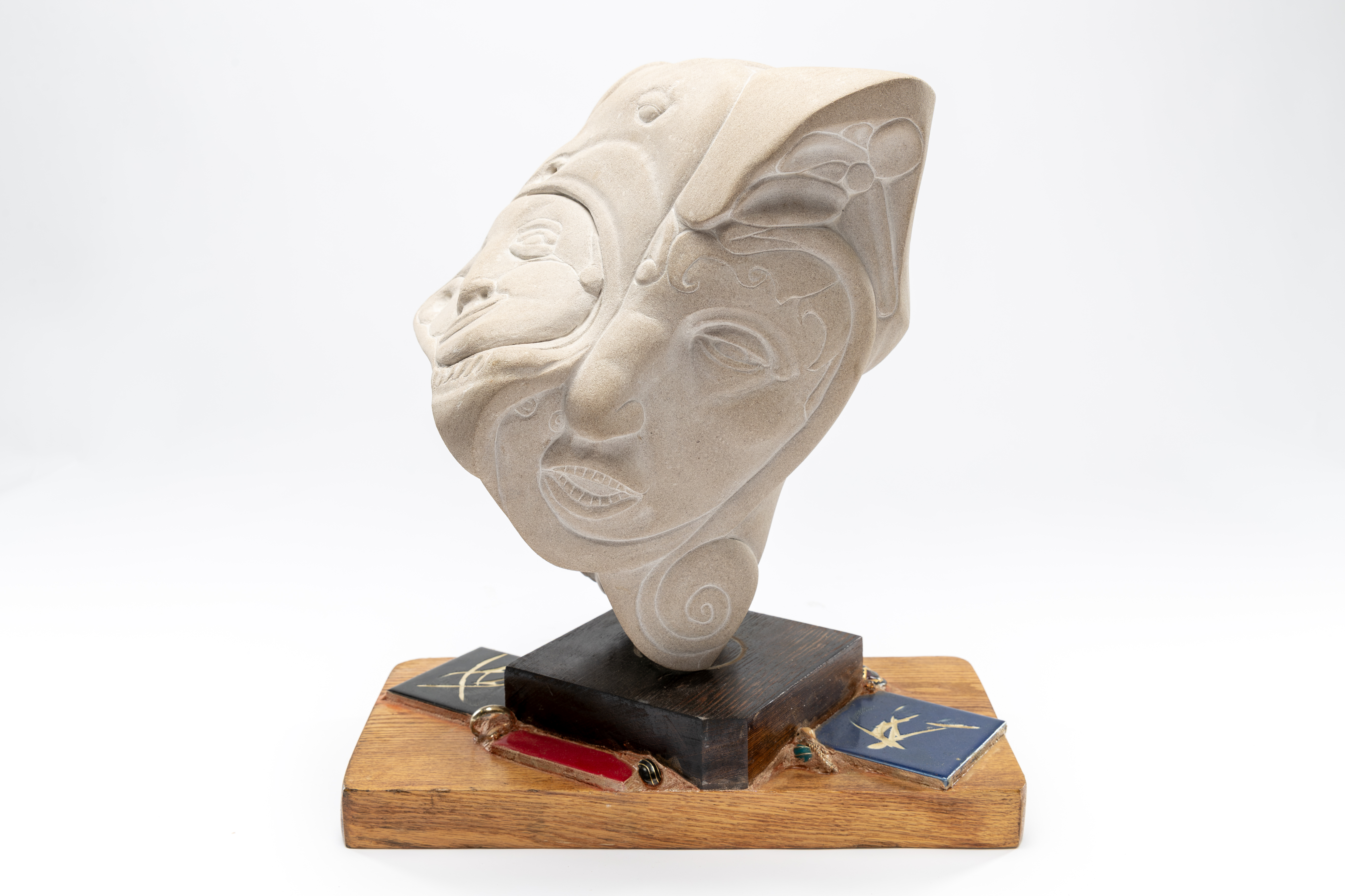 Maria Wolff’s father often spoke of Viking shipbuilding techniques and dreamt of building his own. Her carved leather story panels were inspired by his Danish fine craft lineage and Norse mythology. She collaborated on this piece with the fine woodworker David Masury.