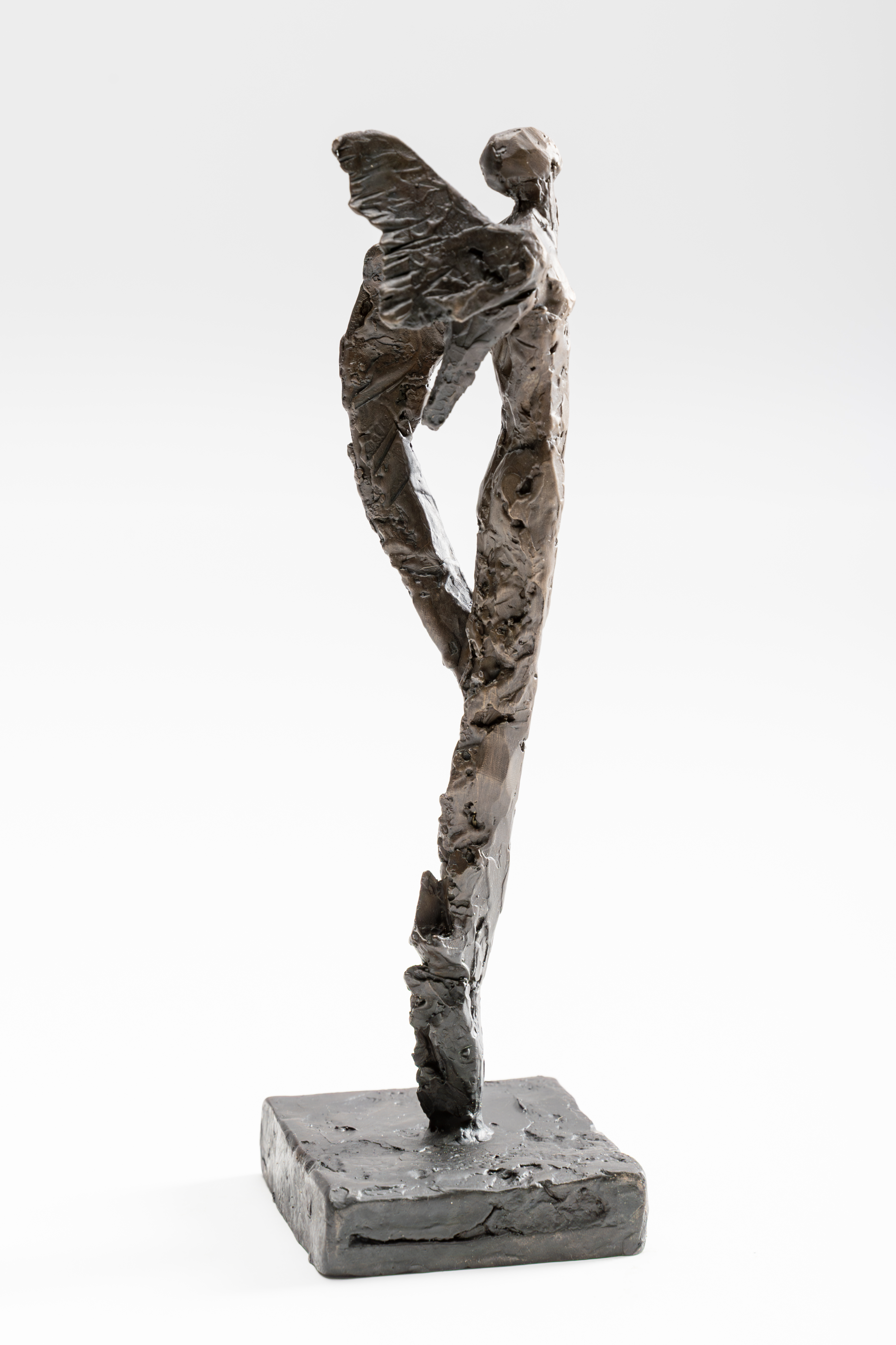 Avis Turner wrote about her sculptures of winged beings emerging from wet clay “through air, like poems.” They are shapeshifting combinations of angel, human and animal. She thinks of them as arriving simultaneously from the past and the future.