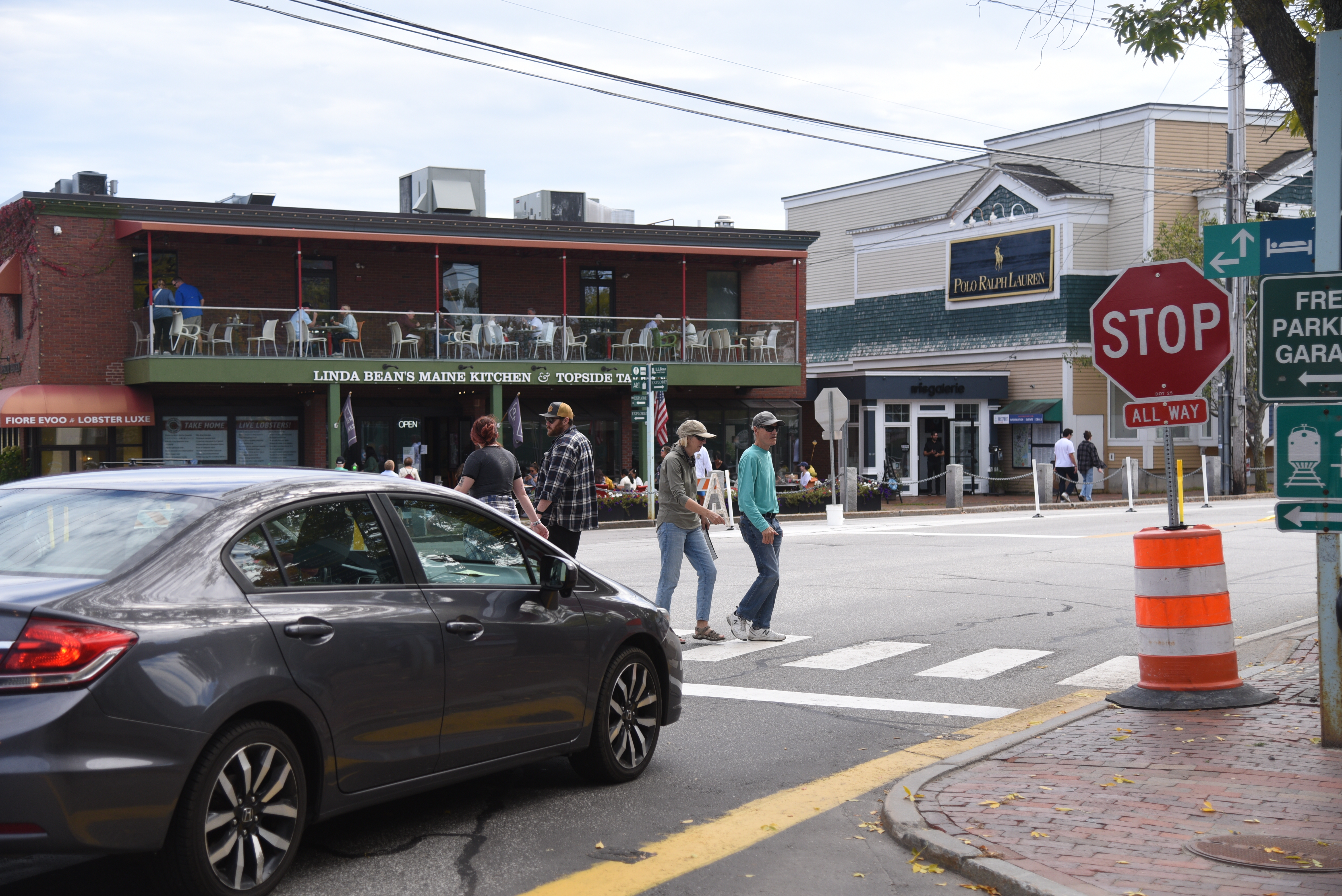 The traffic survey is a part of the Village Corridor Initiative planning partnership with the Maine Department of Transportation, aimed at making downtown Freeport more pedestrian and bike-friendly, while also slowing down traffic. The plan eliminates turning lanes at the intersection in favor of a three-way stop to prioritize the public space, without impacting safety or travel times.