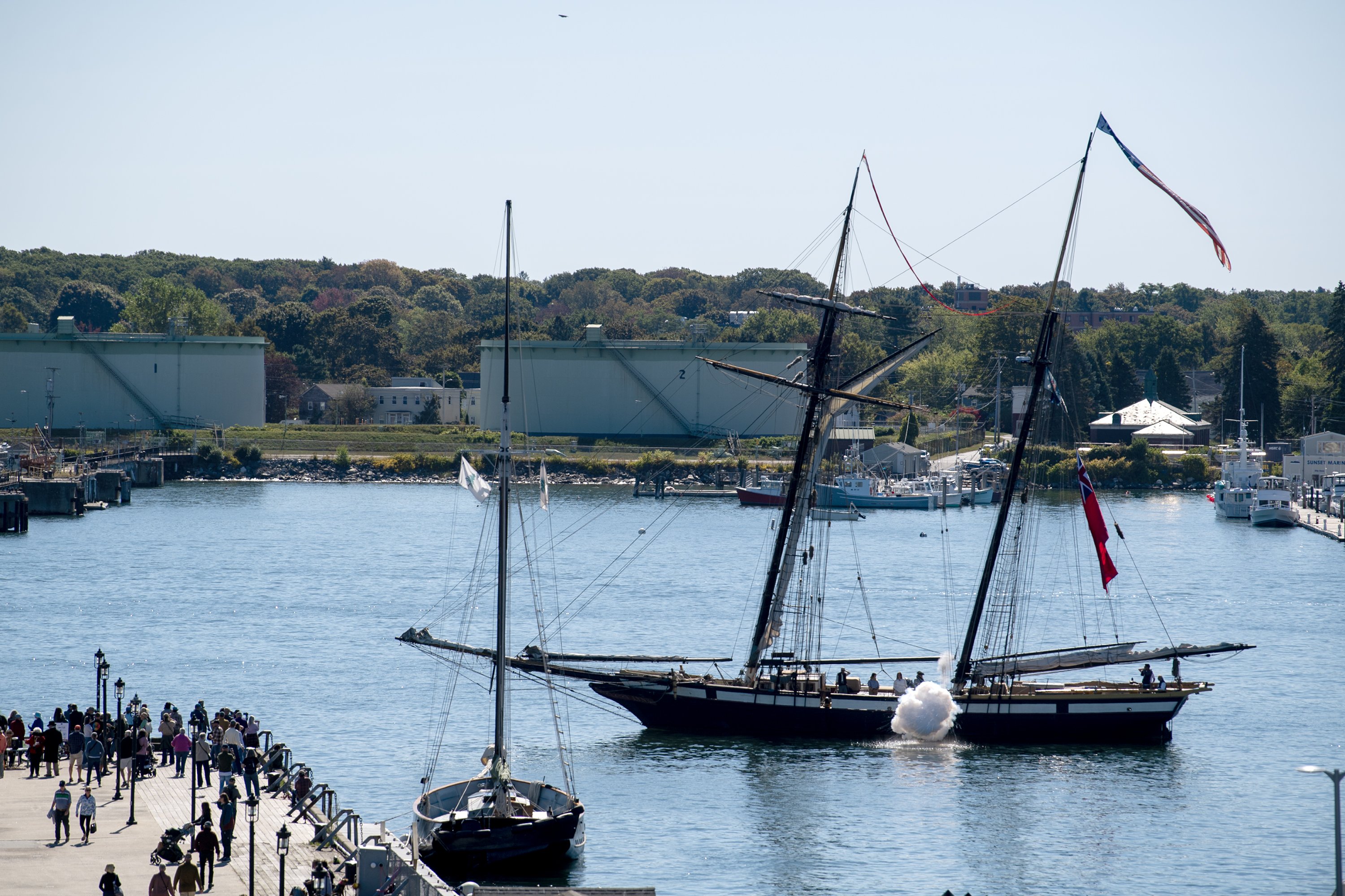 Two-hundred fifty years later, visitors to the Maine State Pier got an up-close look at what it would have been like to see Mowat’s ships in the harbor setting off canons. Others had a chance to walk the Lynx when it docked for the afternoon near DiMillo’s on the Water.