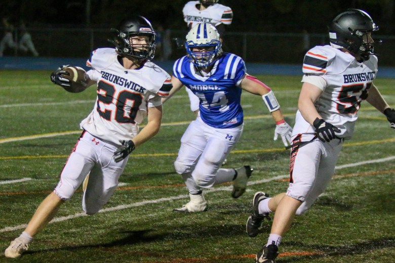 Both teams fumbled during a special teams play. Morse recovered a fumble on Quinn’s first kick return of the evening, and Brunswick recovered a muffed punt by Root shortly before halftime. Neither short field resulted in any points.