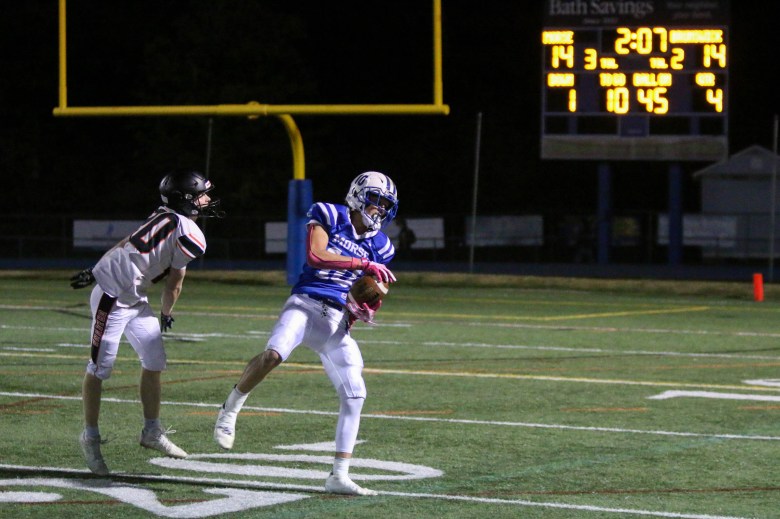 Brunswick found most of its offensive success on the ground with the running back duo of Christian McMaster (14 rushes, 57 yards) and Owen Quinn (eight rushes, 80 yards, TD). Ethan Carr’s 5-yard rushing touchdown gave the visitors a 14-8 lead midway through the third quarter.