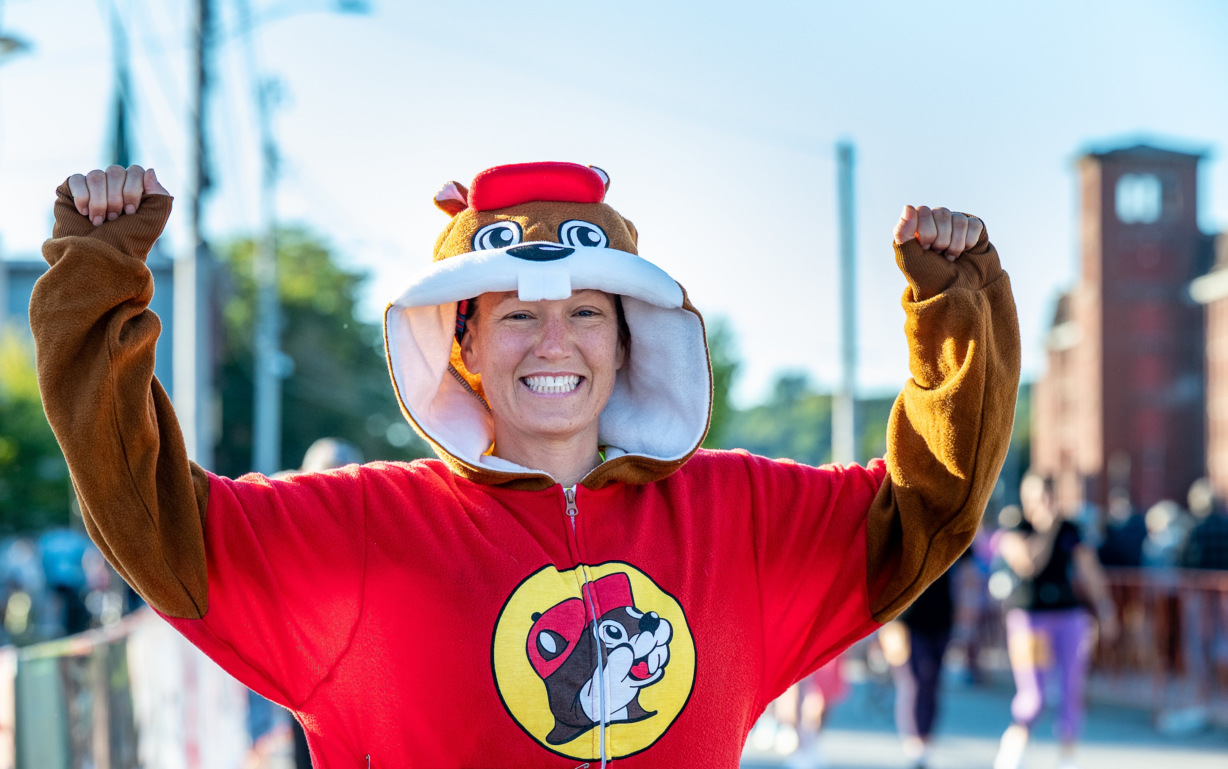 Instead of biking, Weglarz participated in the 5K run, wearing a Buc-ee’s onesie she picked up in Virginia at the popular store during the ride up to Maine, she said. She was excited to participate.