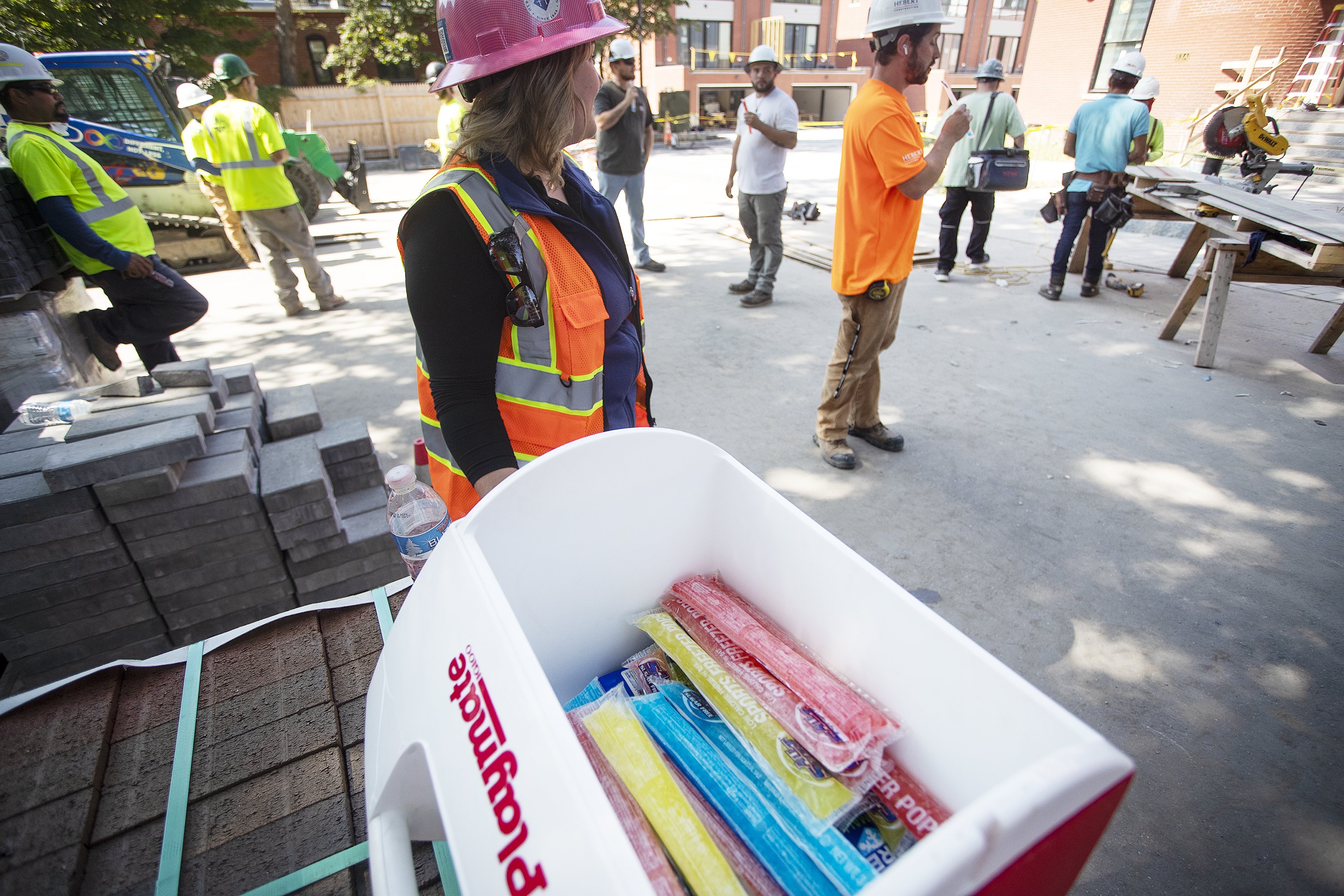 PORTLAND — As the temperatures pushed 80 degrees at a job site in the West End early this month, about a dozen workers pulled ice pops out of a cooler. Some tore off the plastic edges with their teeth. Others sliced them with box-cutters.