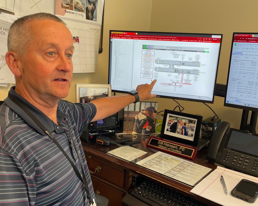 Now, the temperature hovers between 70 and 72 degrees. Bill Hansen, facilities director at RSU14 Raymond/Windham, can see the temperature in each room of each building in the district from his “mission control” on his two big computer monitors, and make adjustments if needed. The system is more energy efficient, and filters the air, too, he said.