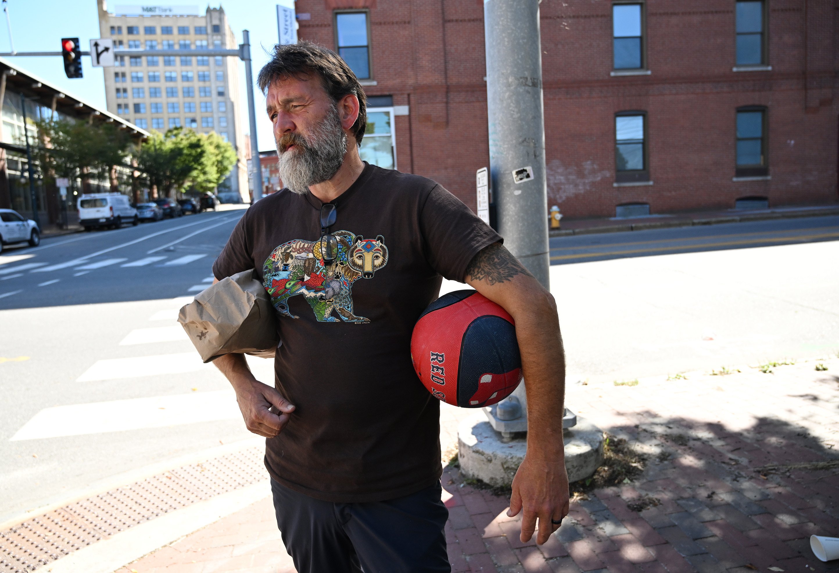 John Weber, 50, said he doesn’t think he’ll be able to get to the shelter. He’s been homeless for about three months and has a traumatic brain injury that makes it hard for him to navigate the city on his own.