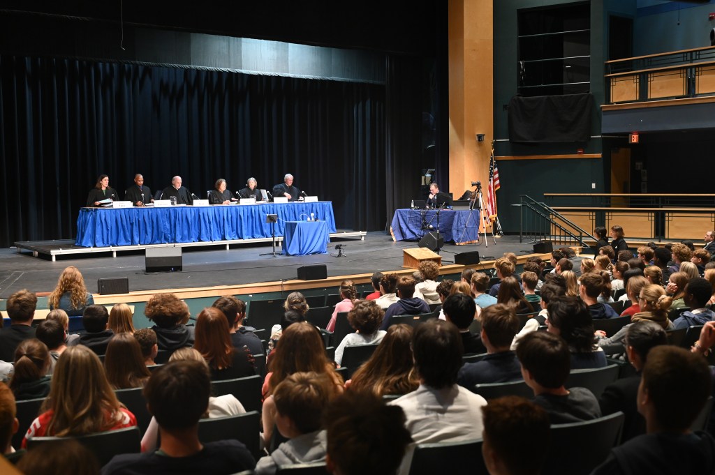 Some students had read the case packets beforehand or were filling out worksheets, while others went in blind and attempted to follow along. Social studies teacher Shawn Magaw led a moot court exercise in his civics class prior to the justices’ visit, familiarizing students with how the proceeding would go.