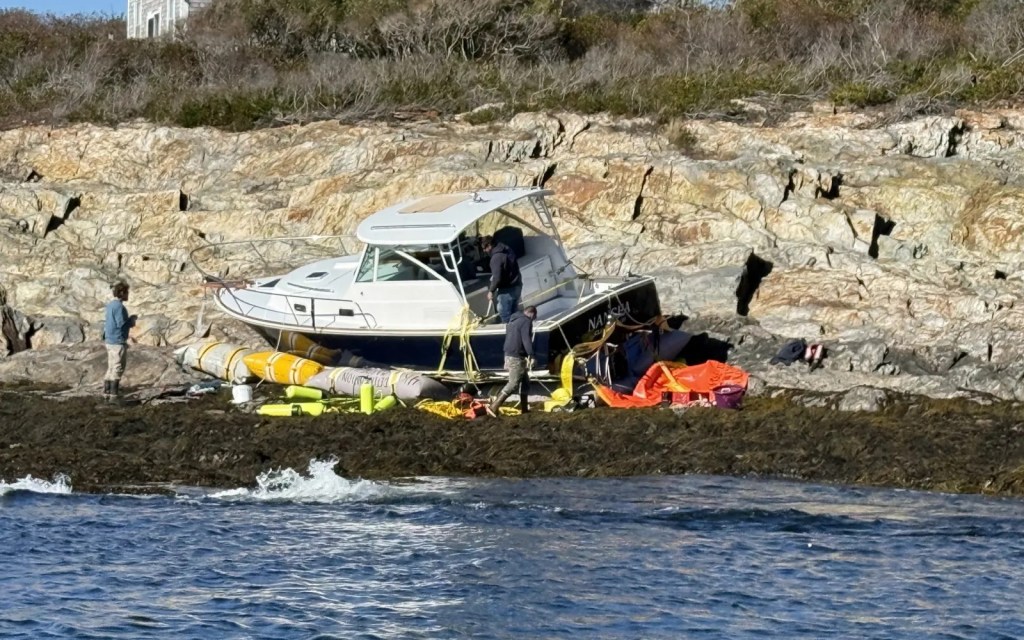 Two people were rescued the evening of Oct. 6 after their boat lost power and ran aground on Great Mark Island near Harpswell, prompting a dramatic water rescue involving local lobstermen, emergency responders and a private salvage crew.