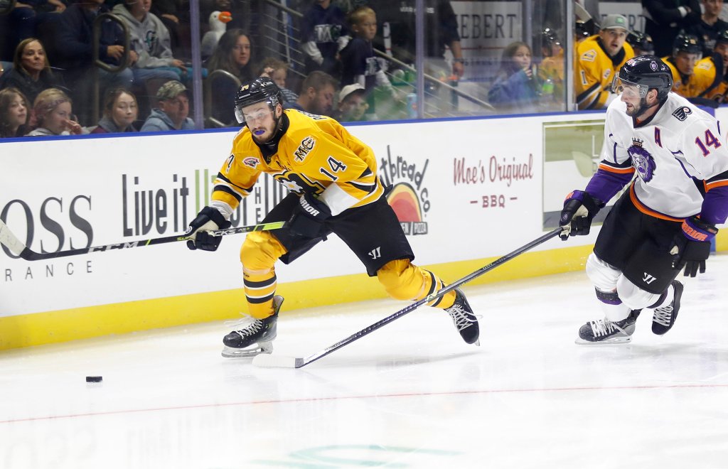 “I hit the post a couple times. I got a lot of good chances. It was really cool. I got to play with (Trevor) Zegras and (Sonny) Milano, two really good skill guys, top NHL players,” Perreault said following the Mariners’ home opener, a 4-0 loss to the Reading Royals. “It made it a lot easier for me to make plays. What Z told me before the game is, if I’m ever in trouble, just throw (the puck) at him and he’ll figure it out.”