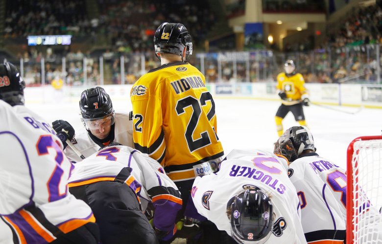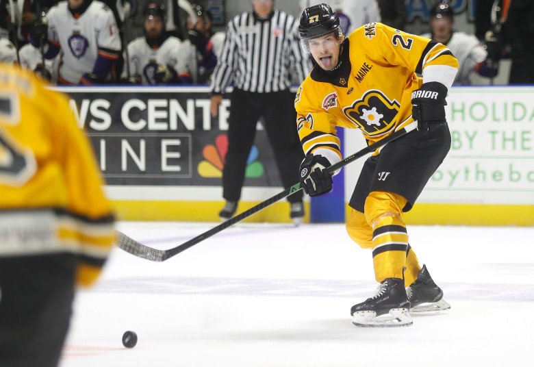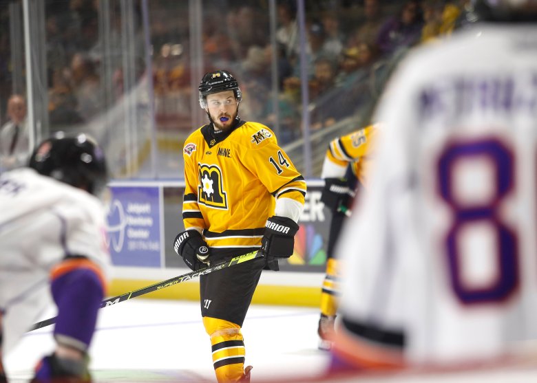 He’s been chasing those 11 minutes and change ever since. Once you’ve tasted the NHL, it lingers. It always seems right around the corner, even when he’s now skating for the Maine Mariners, two long stops below the NHL.