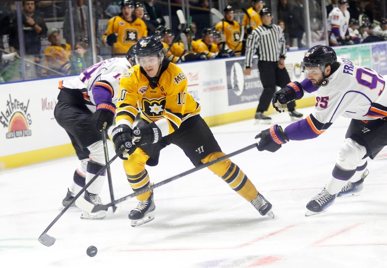 “I hit the post a couple times. I got a lot of good chances. It was really cool. I got to play with (Trevor) Zegras and (Sonny) Milano, two really good skill guys, top NHL players,” Perreault said following the Mariners’ home opener, a 4-0 loss to the Reading Royals. “It made it a lot easier for me to make plays. What Z told me before the game is, if I’m ever in trouble, just throw (the puck) at him and he’ll figure it out.”