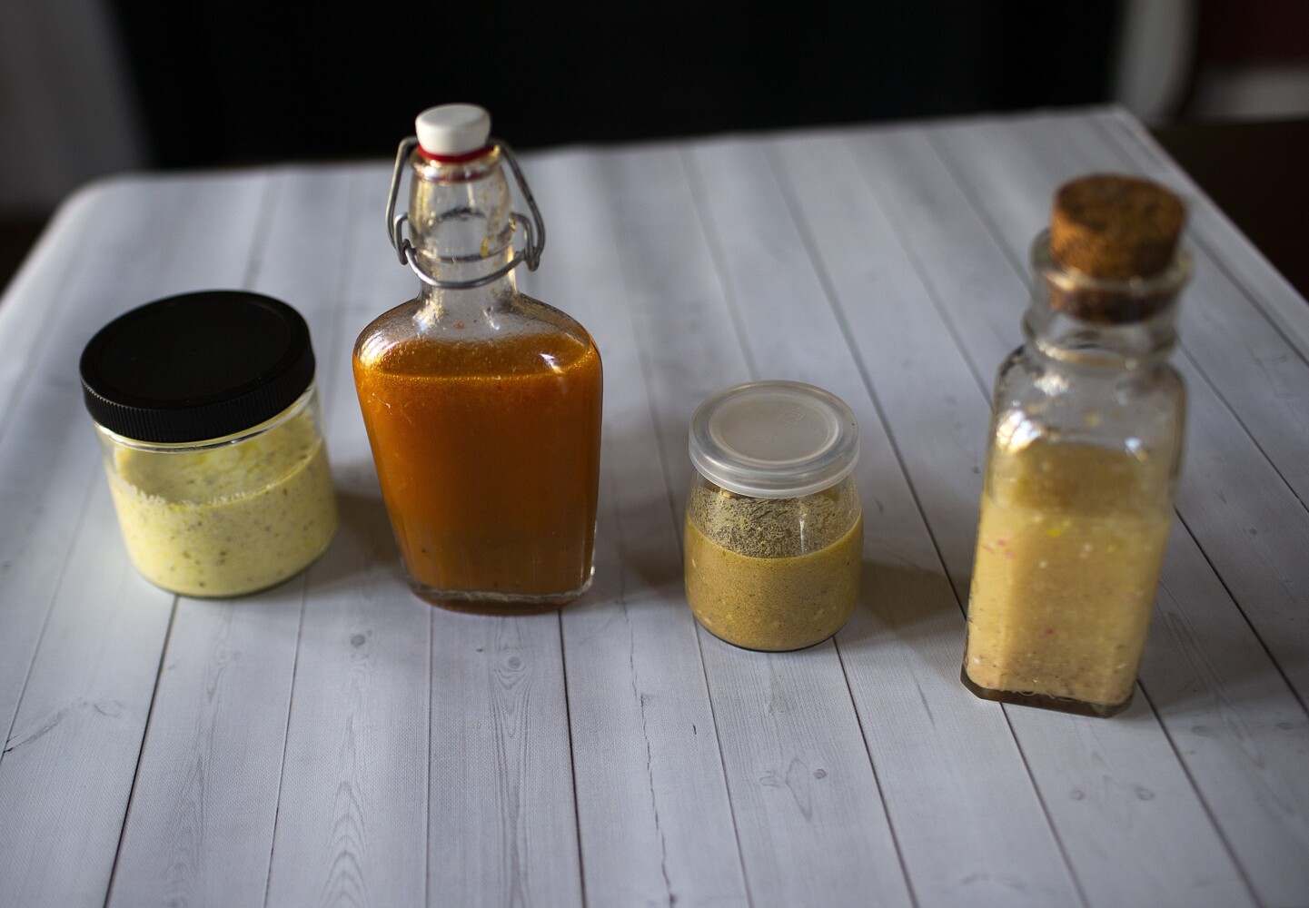 On this matter, I have one question. Why would you pay good money for a list of ingredients you can’t pronounce when you have all you need in the pantry to make a perfectly delicious salad dressing at home? Start with a jar: That one with a tiny bit of mustard in it will do just fine as the mustard will help the dressing emulsify. Add one-part vinegar to two-parts oil, a teaspoon of minced allium of your choice, a pinch each of salt and pepper, and a smidge of something sweet (maple syrup, balsamic vinegar, even a bit of jam) to cut the edge ever so slightly. Give it a shake and you’re good to go.