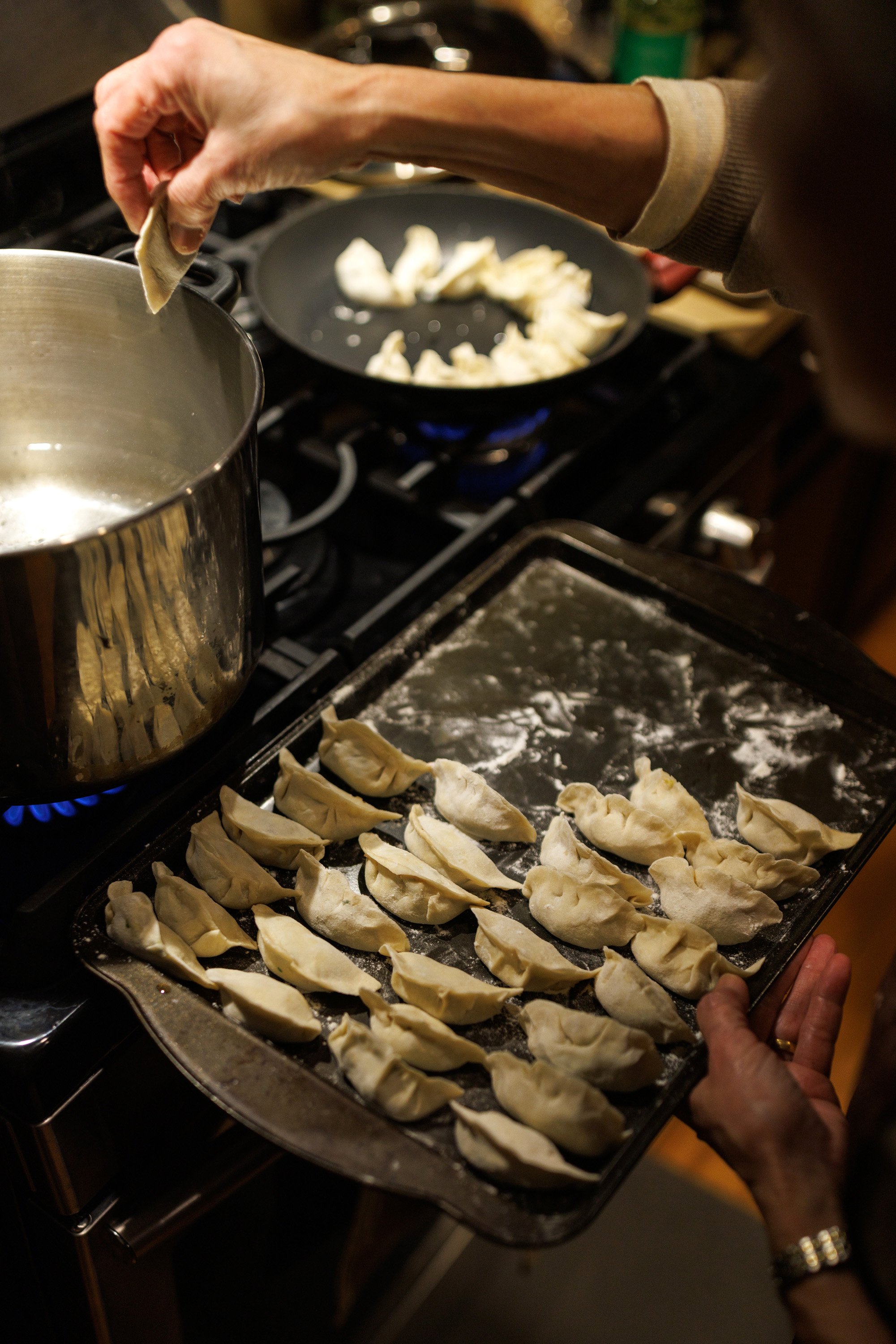 Dumplings can help you economize because the fillings can be made from whatever you have on hand (including leftovers) and the dough is typically just flour, water and maybe an egg. Making them can be a chore — or a party. Make the dough, invite a few people over with instructions to bring their favorite filling, spend a few hours doing a mostly mindless task (once you get the hang of it, of course) and have a lot of laughs; everyone goes home with a tray of dumplings.