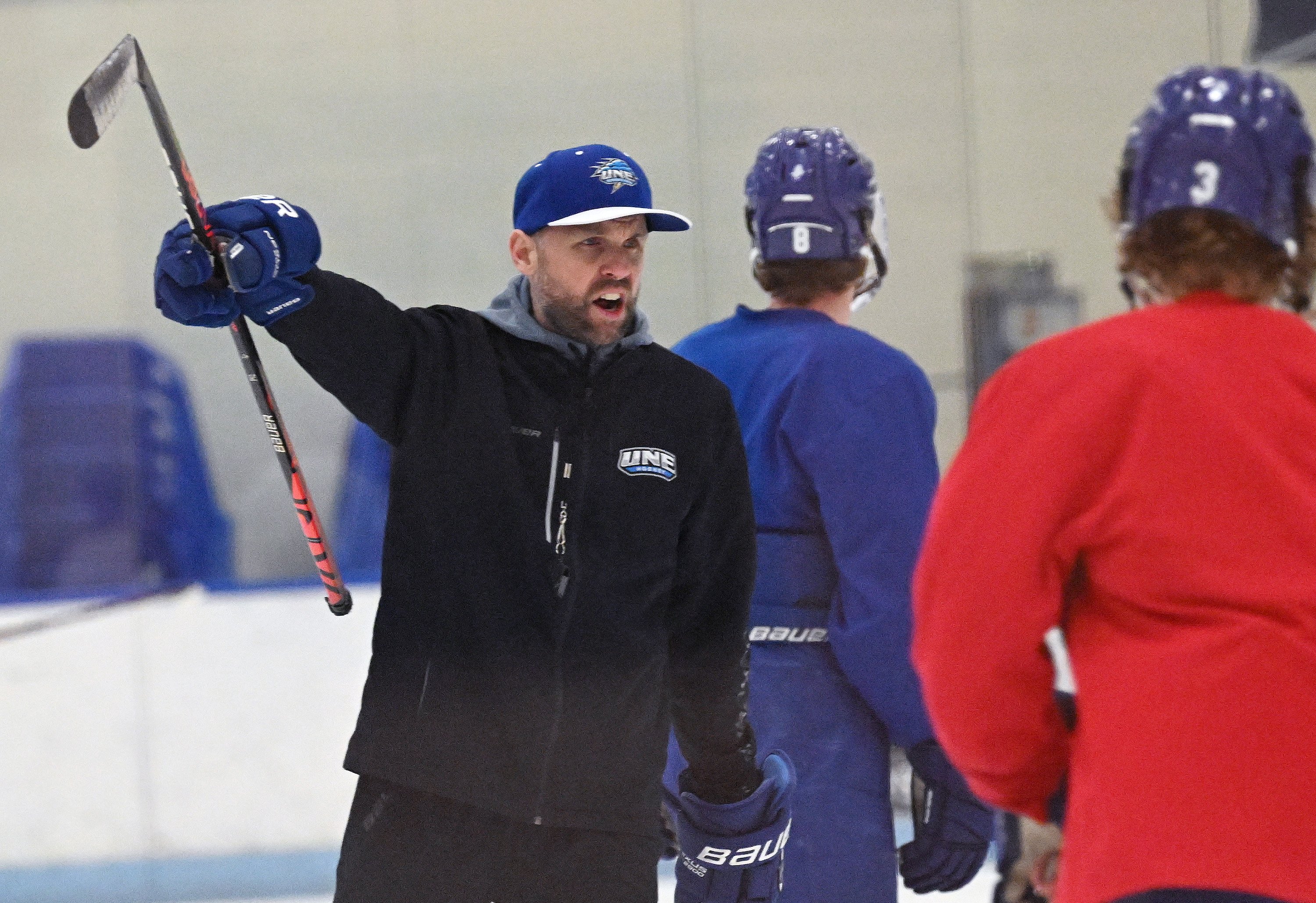 The UNE women’s team went 13-13-1 and reached the Conference of New England semifinals in 2024-25. Laine Lemieux (Topsham) and 2024 Becky Schaffer Award winner Emerson Homa (Gorham) are in-state players on the roster.