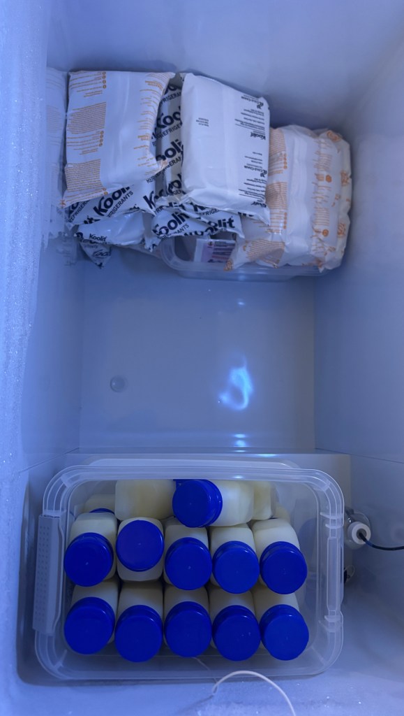 All donors are screened, and all milk is pasteurized and tested in an independent laboratory before being delivered. The donated milk is pooled to optimize nutritional value, so one bottle of donor milk comes from five donors.