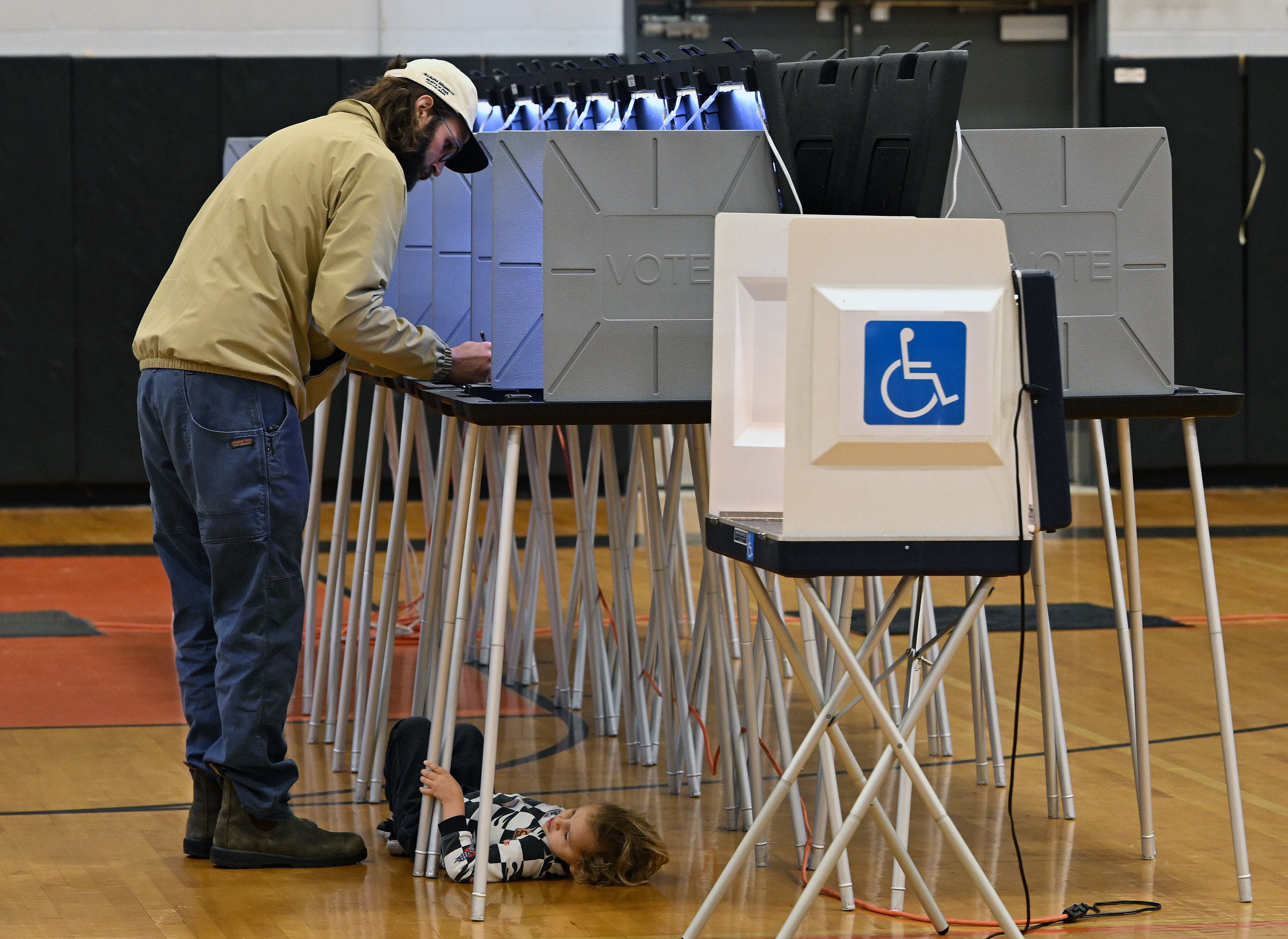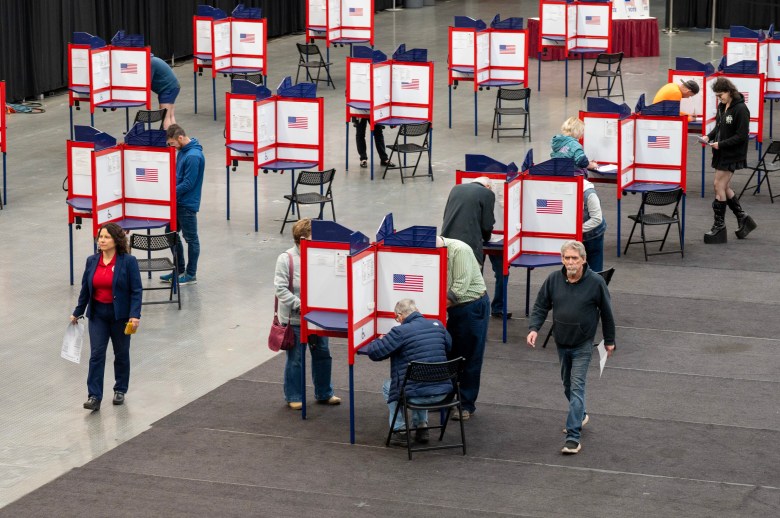 Morning traffic was steady, and by 8:30 a.m., 327 voters had cast their ballots. Kinney noticed that some people filled out the state ballot but not the municipal one, an indicator that the referendum questions on voter ID and a red flag law were driving traffic.
