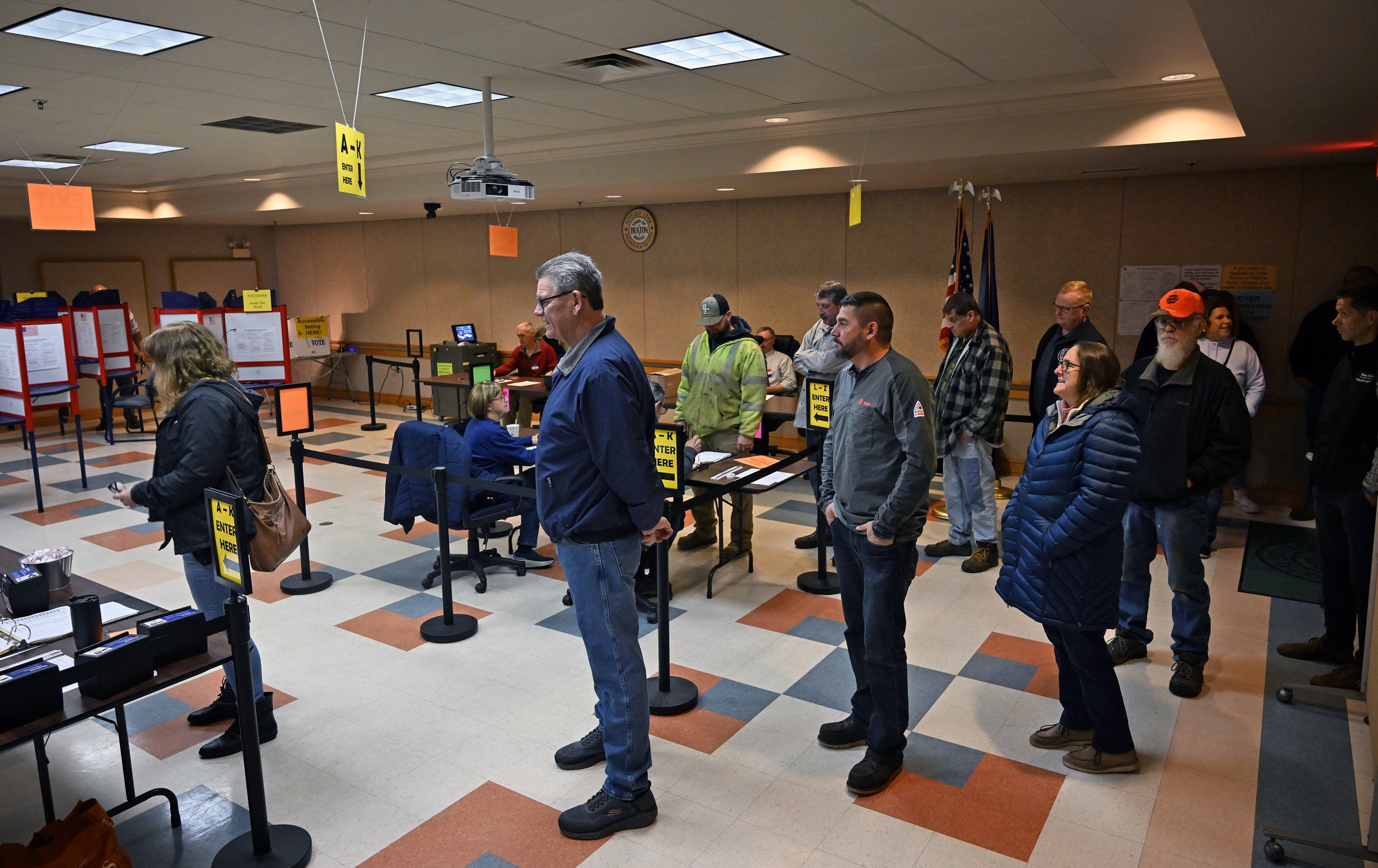 With nearly 10 minutes to go before polls in Buxton opened, a dozen residents crowded inside the town hall doors, eager to cast their ballots.