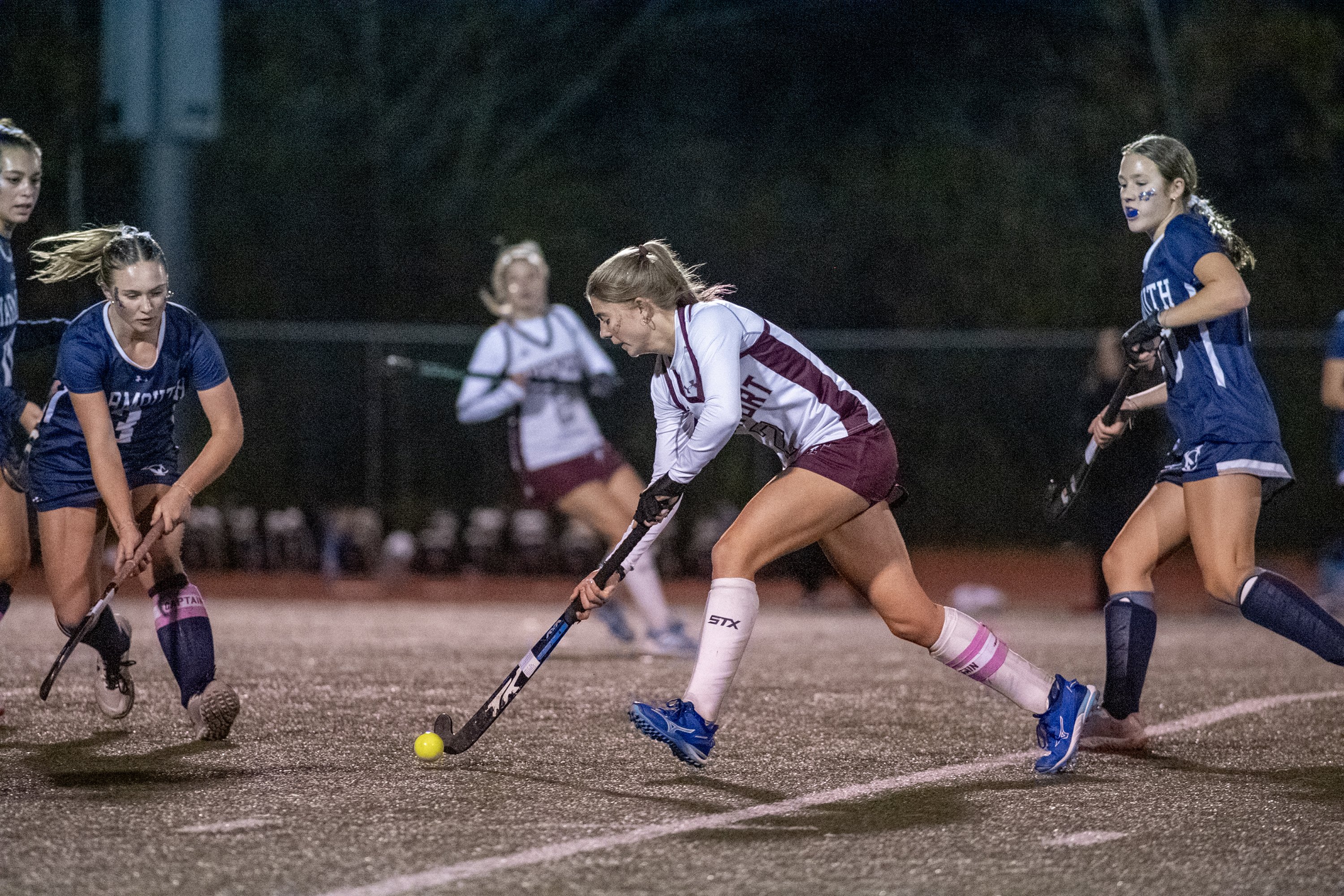 Yarmouth didn’t buckle, as Celia Zinman led an attack that came at Freeport in waves and piled up nine corners in the first half and 10 for the game. Juicy rebounds and clear looks were scarce, however, and when they showed up, a defense led by Maddie Kryzek (nine saves) cleaned them up.