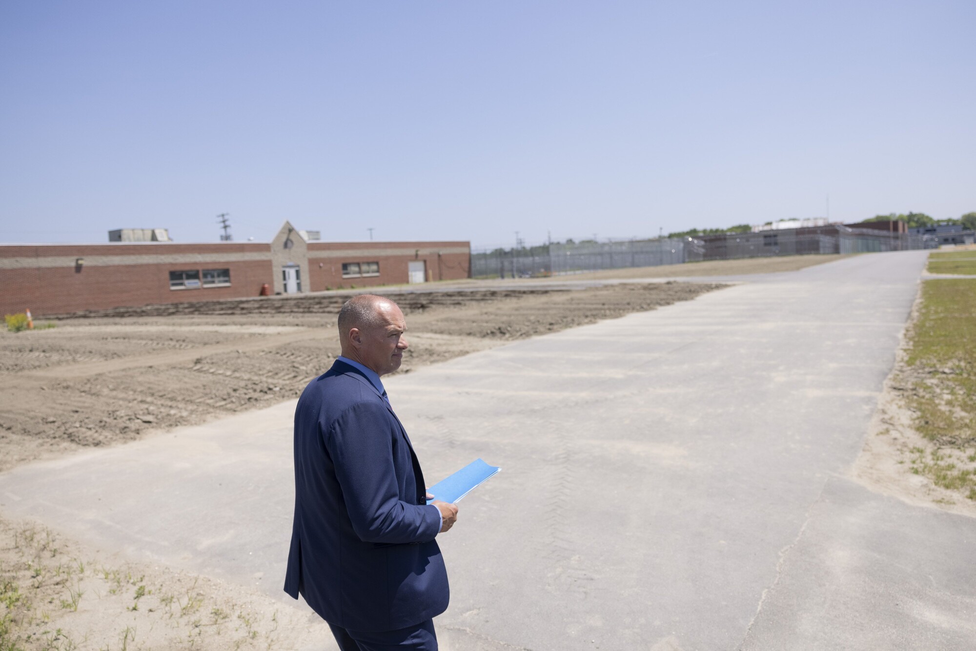 The yard at the edge of the 620-bed prison is spacious but empty. There are two benches, one chained to a small maple that sheds ember-red leaves with every gust. A razor-wire fence contains it all.