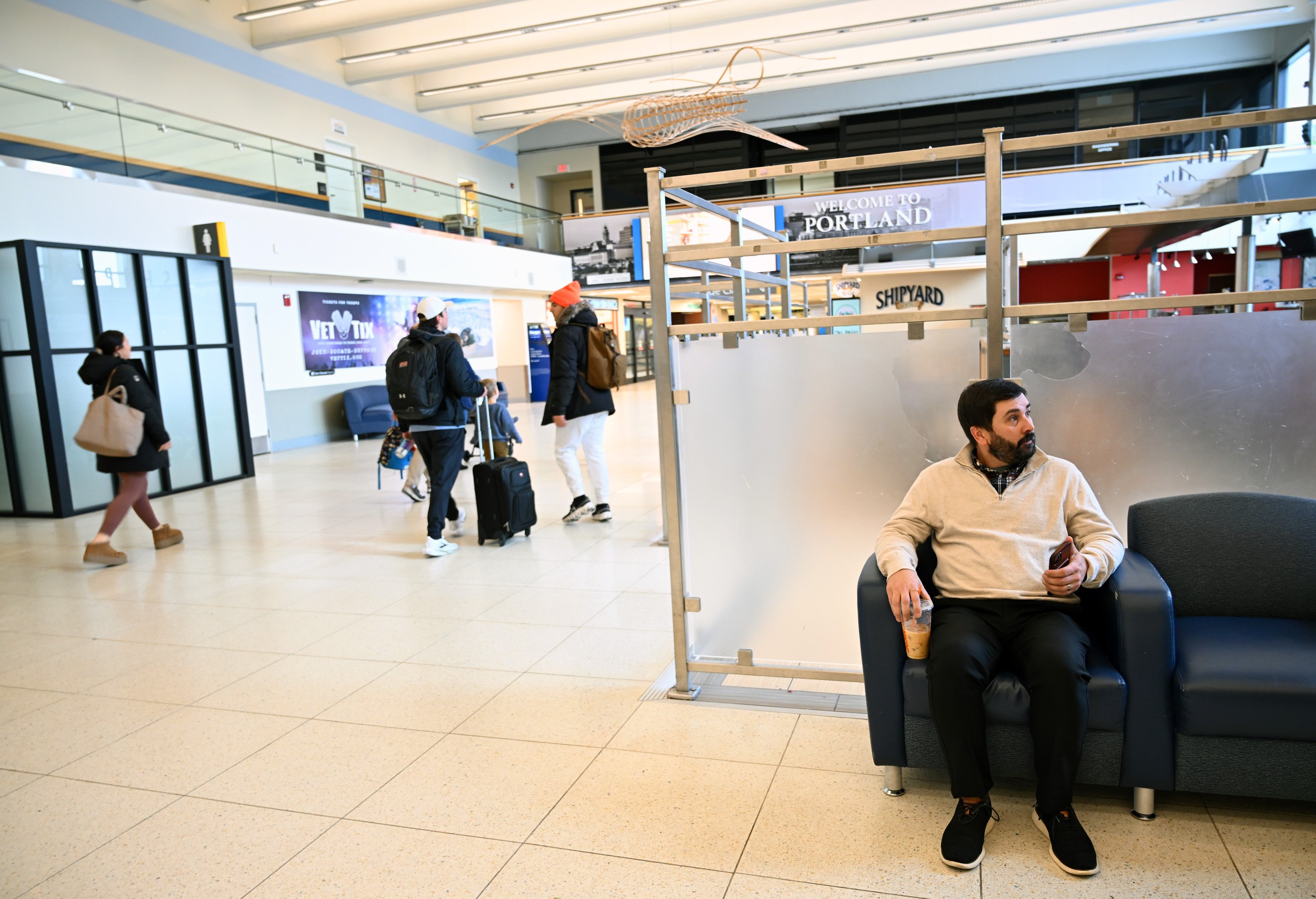 Carr, who lives in Buxton, was at Portland International Jetport on Friday, sipping an iced coffee as he waited for his mother to arrive on a Delta flight from Michigan.