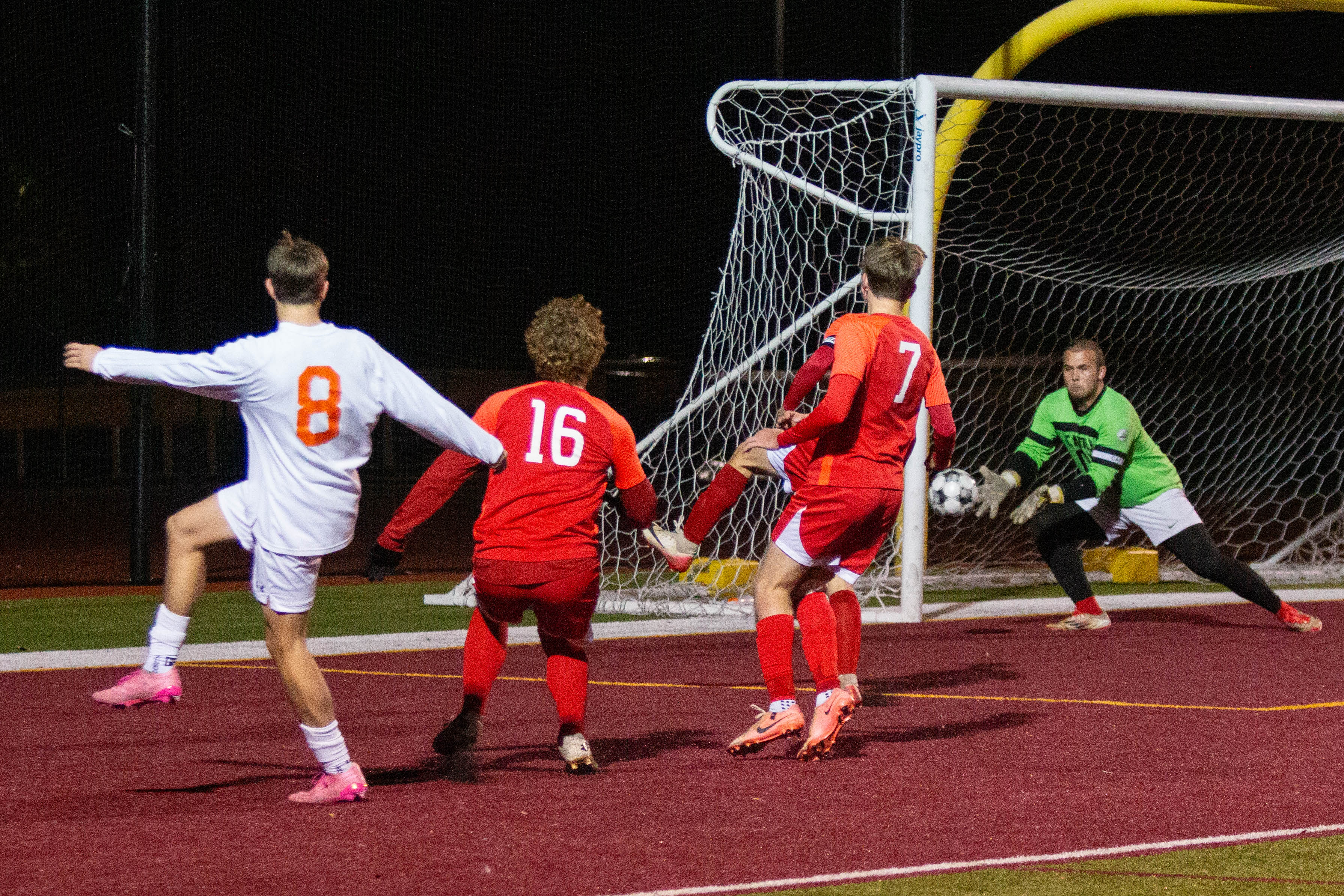 The game tying goal gets by Oceanside goalkeeper Grady Geretz during the second half. (Daryn Slover/Staff Photographer)