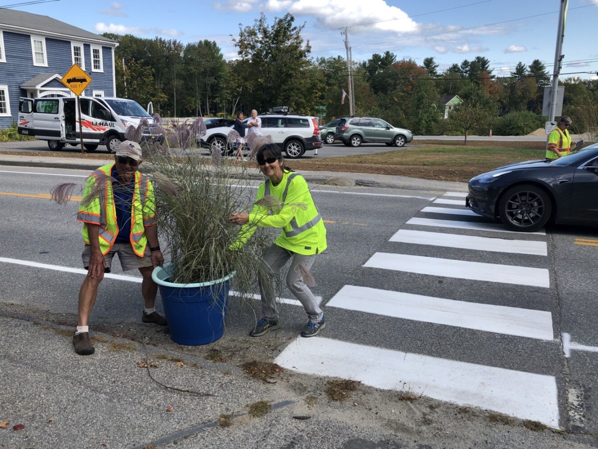 North Yarmouth installs bollards, potted plants to stymie Village Center speeding