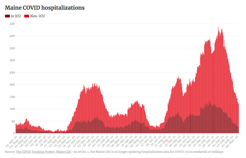 COVID-19 hospitalizations in Maine continue downward trend