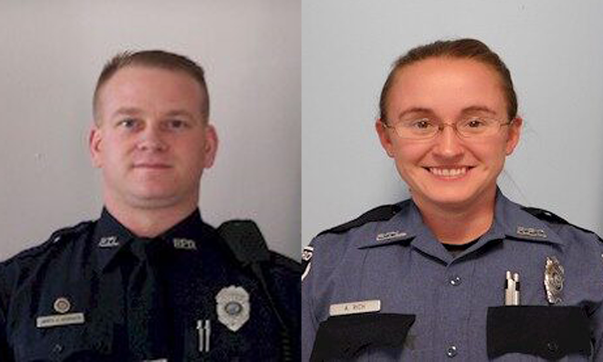 Sgt. James Bernard and Patrolman Ashley Rich credited for saving lives in blaze.