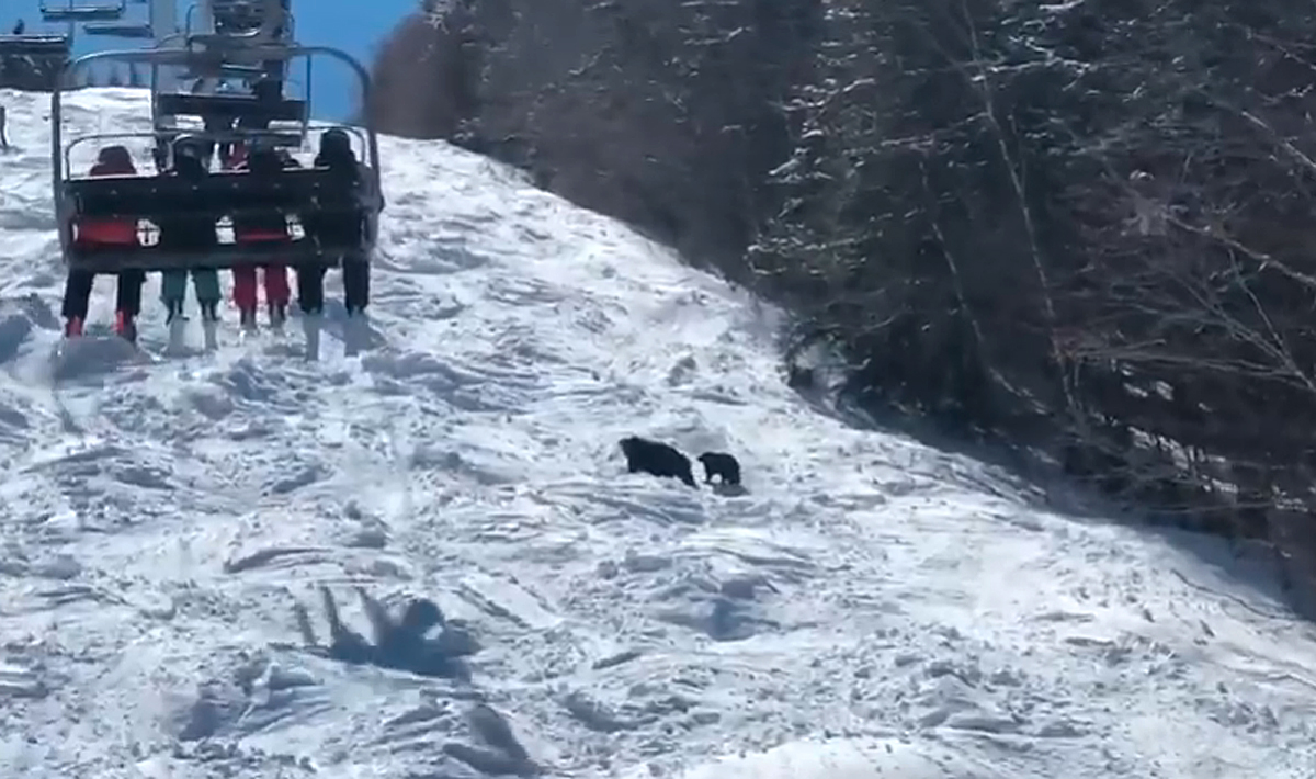 Video: Bears check out the conditions on Sunday River slope