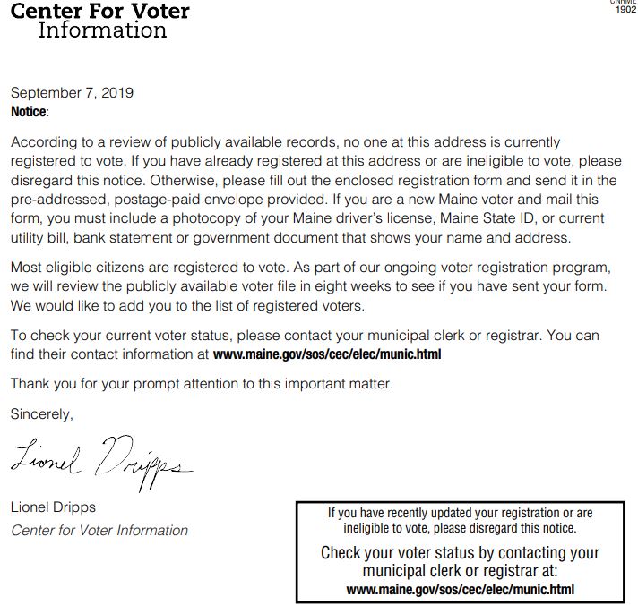 Voters in Cumberland County may have received mailings claiming they are not registered to vote, but they are.