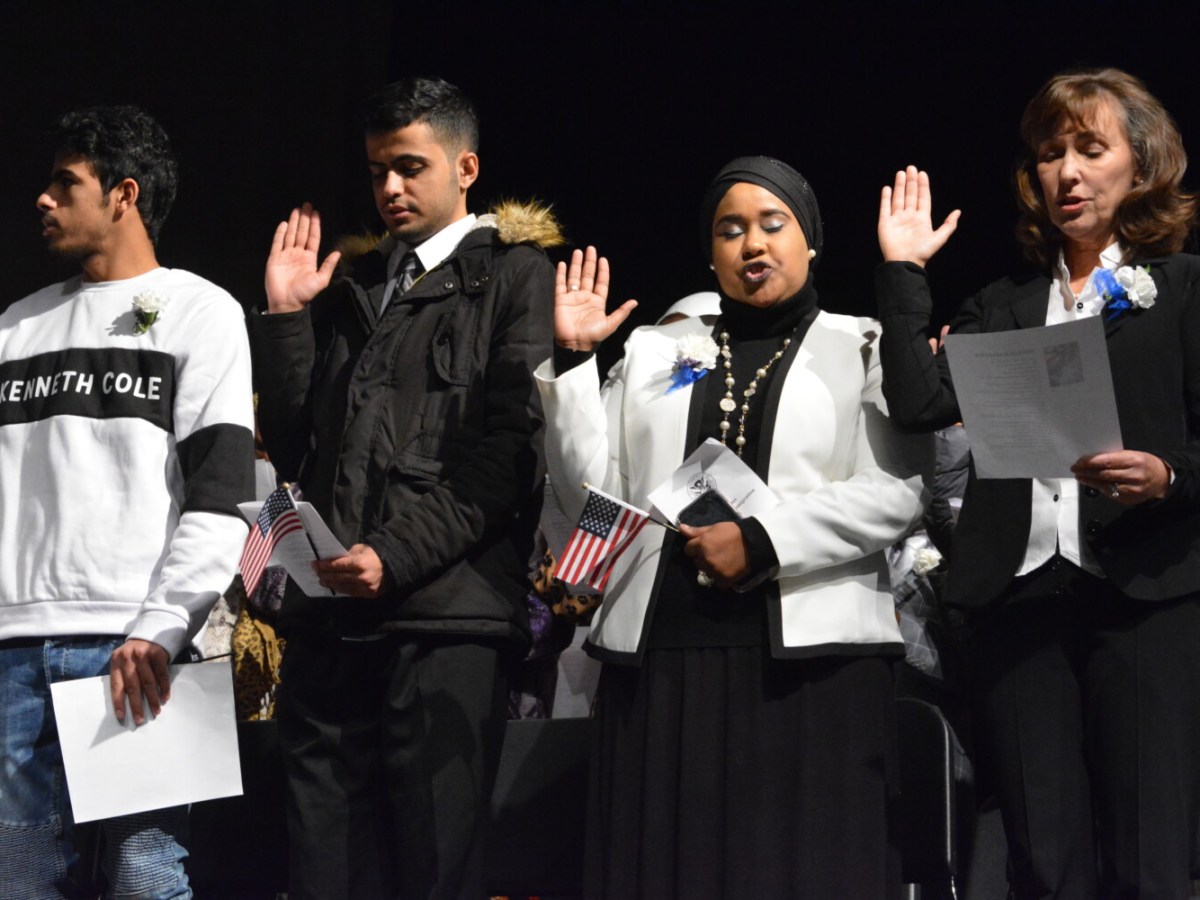 Forty-five new Americans were naturalized at a ceremony held at the Cape Elizabeth High School.