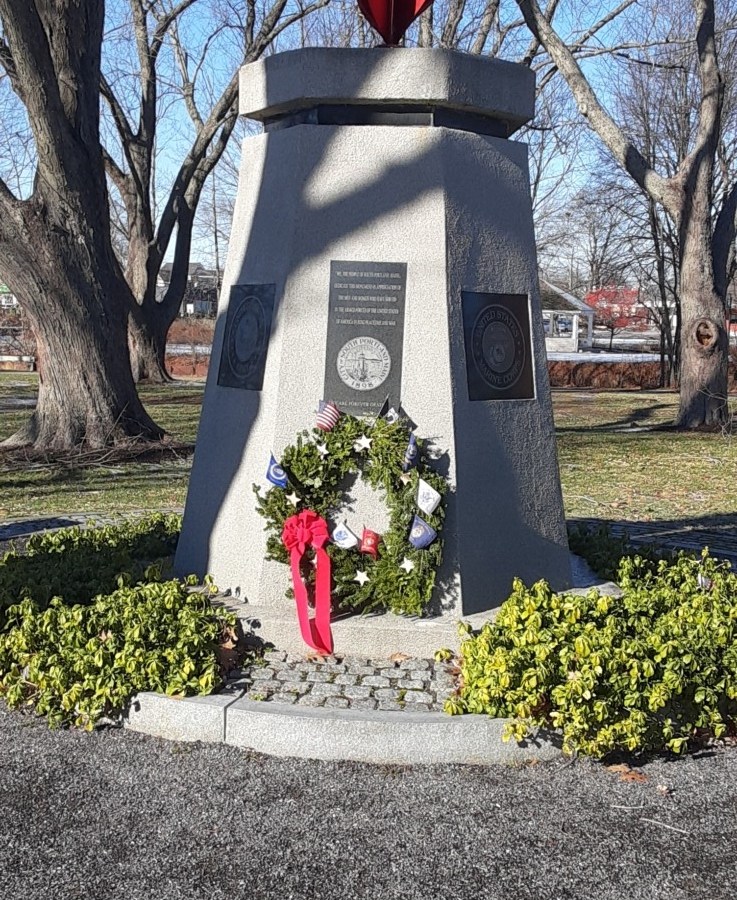 A wreath-laying ceremony held at South Portland’s Veterans Memorial.