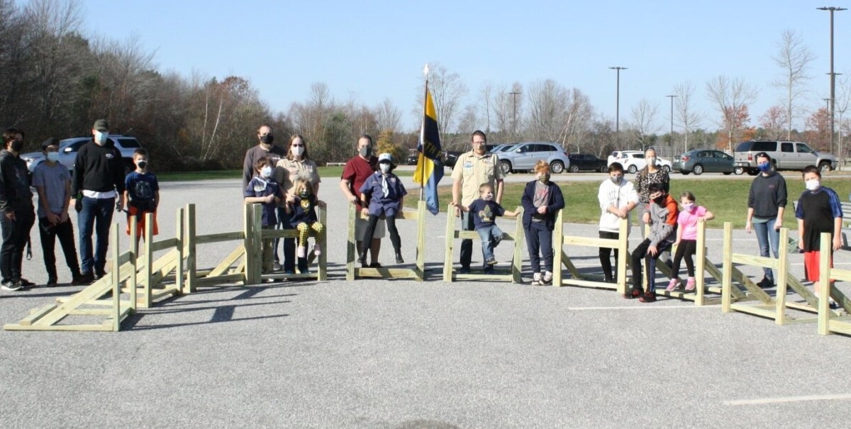Scouts build supports for community sand barrels