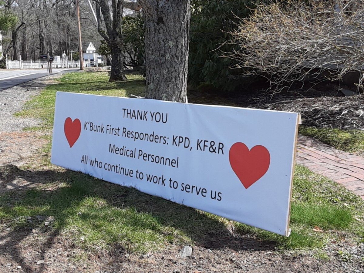A sign along Route 35, between Kennebunk and Lower Village, offers thanks to those who continue to work and serve during the COVID-19 pandemic.