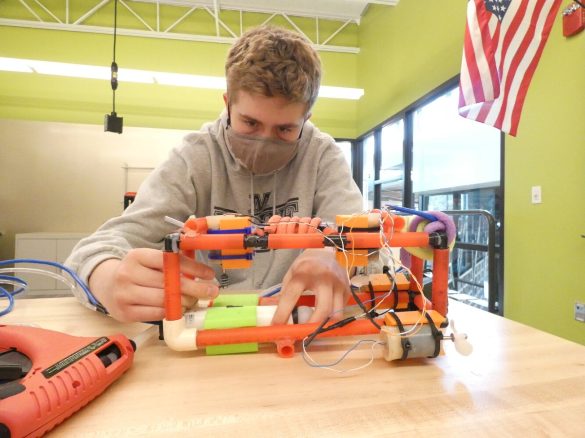 Mt. Ararat High School juniors Hudson Holden, Ben Humphry and Alyssa Moody designed a remote-controlled robot to operate underwater.