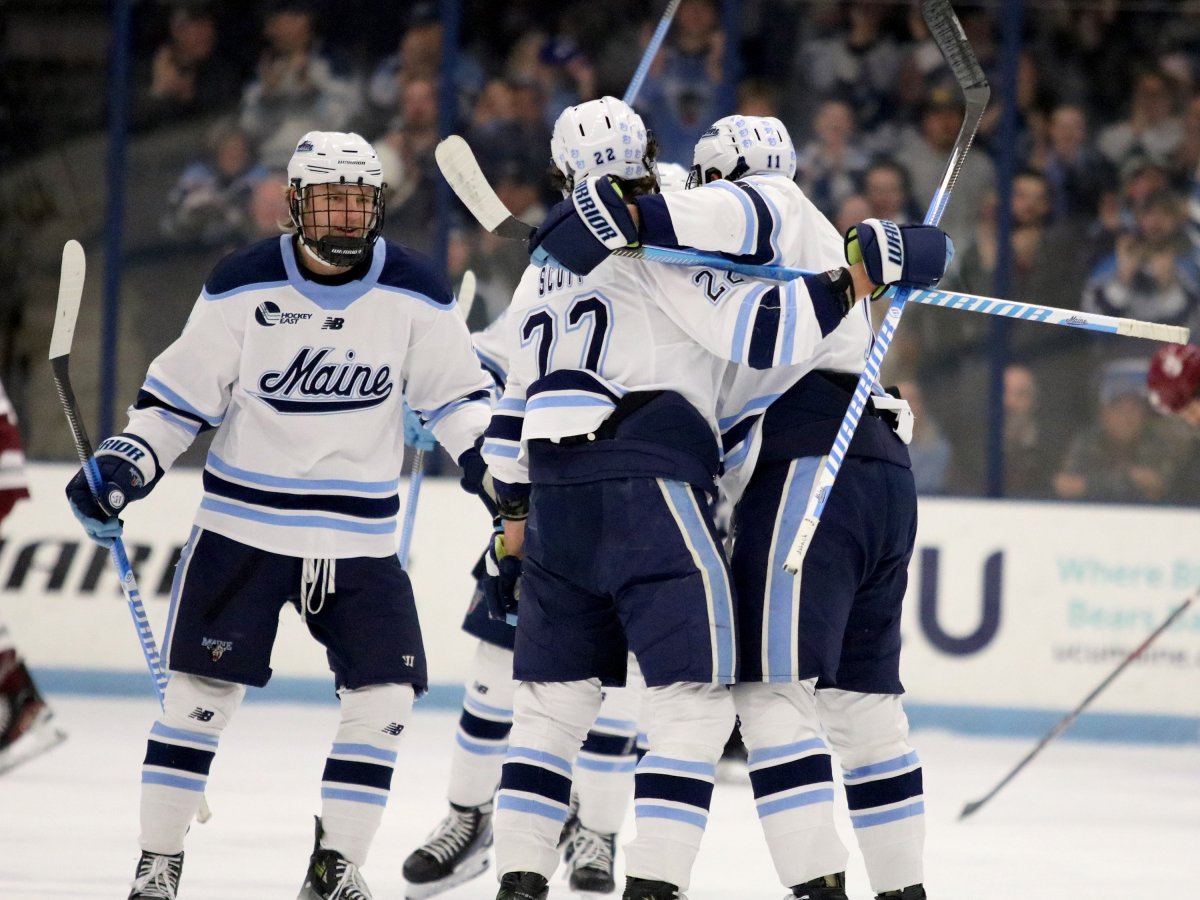 Lynden Breen nets a goal with less than two minutes left in the third period, lifting the Black Bears to a 4-3 victory.