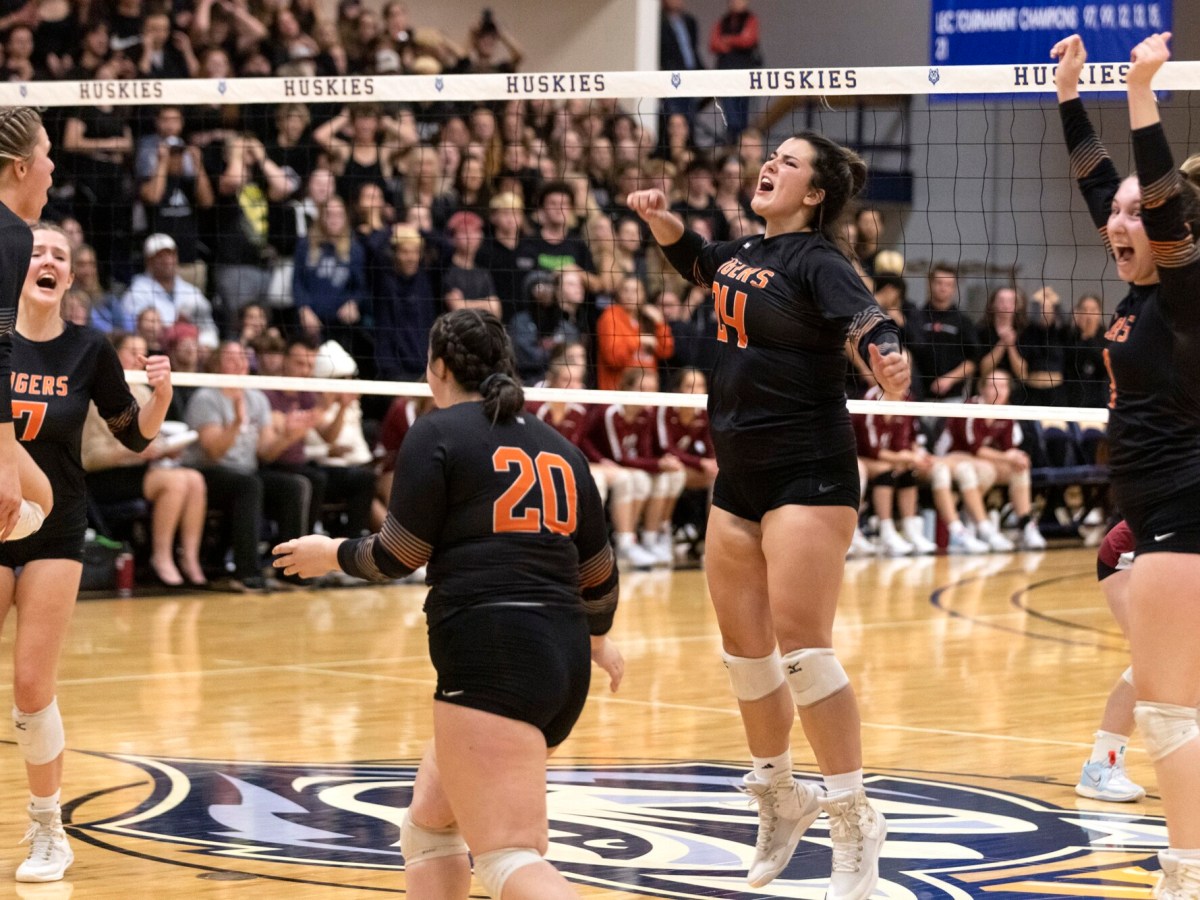 The undefeated Tigers squash a rally from the Rams in the third set to sweep the Class A final, 25-21, 25-16, 26-24.