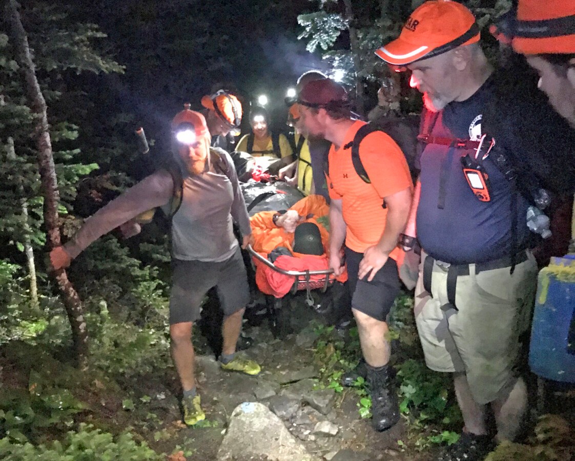 Rescuers carry injured AT hiker from Spaulding Mountain to Sugarloaf
