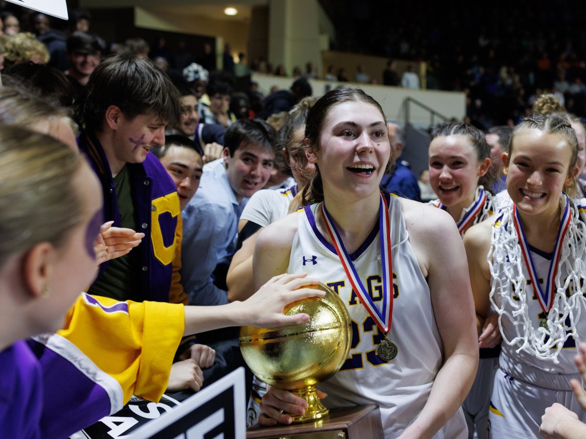 Maddie Fitzpatrick and Ruth Boles lead the Stags to their second state championship in three years, defeating Gorham, 38-24.