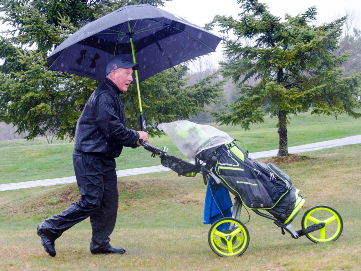 While many players stayed home on a day when Maine golf courses reopened, Fred “Derf” Harlow played 54 holes at The Meadows in Litchfield.