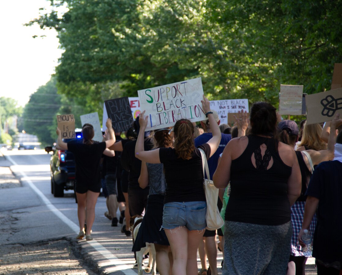 Windham PD escorted more than 60 protesters in a peaceful march from the high school to the police station Thursday night.