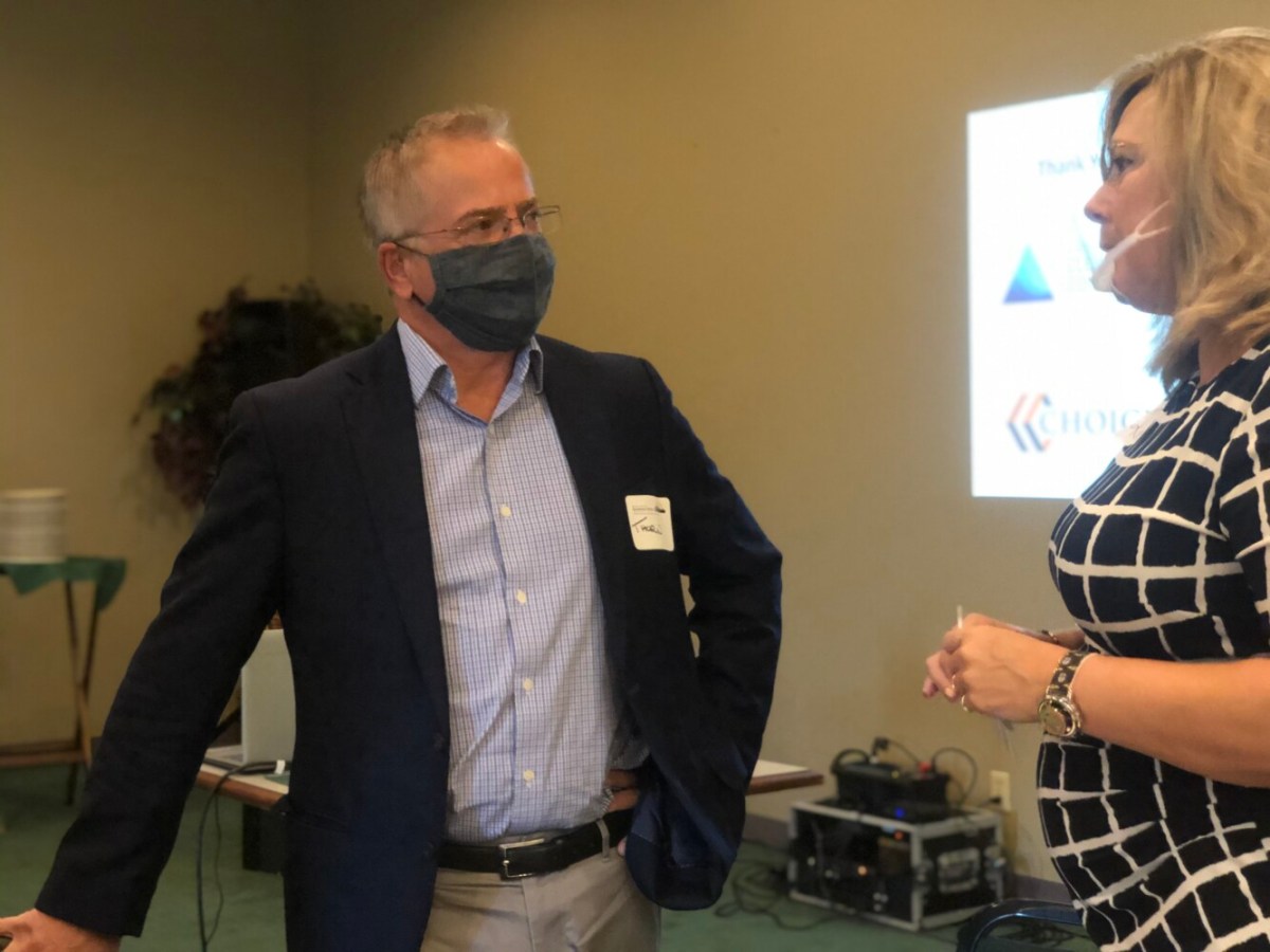 Thorn Dickinson, CEO and president of NECEC Transmission LLC, spoke about the CMP Corridor project at Mid-Maine Chamber of Commerce Business Breakfast while legislators opposed to the project asked for equal time.