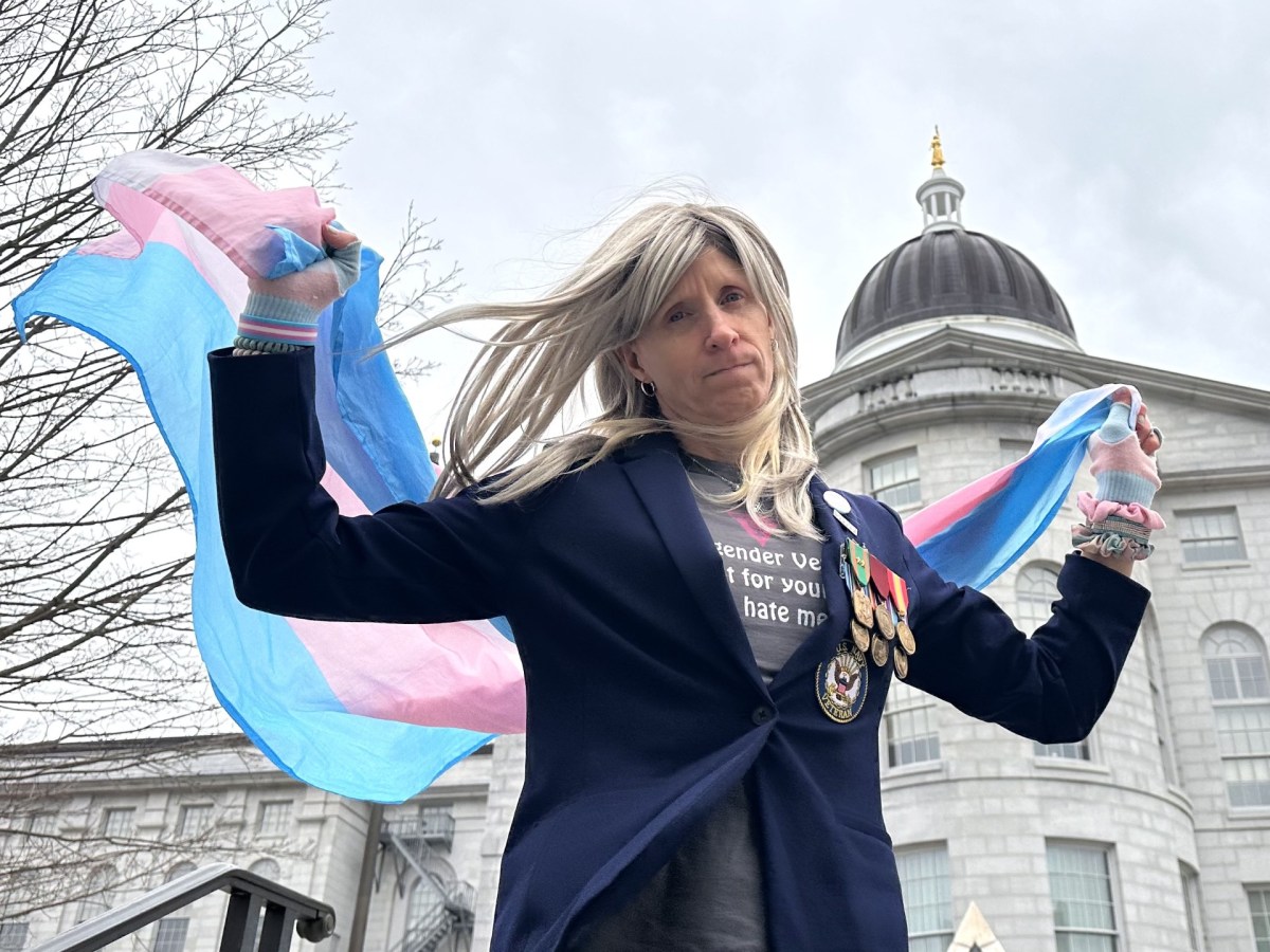 Vivian Myers-Jones, a trans woman and U.S. veteran living in New Brunswick, says she feels privileged that she can exercise her right to protest anti-transgender polices in Maine and return home to Canada.