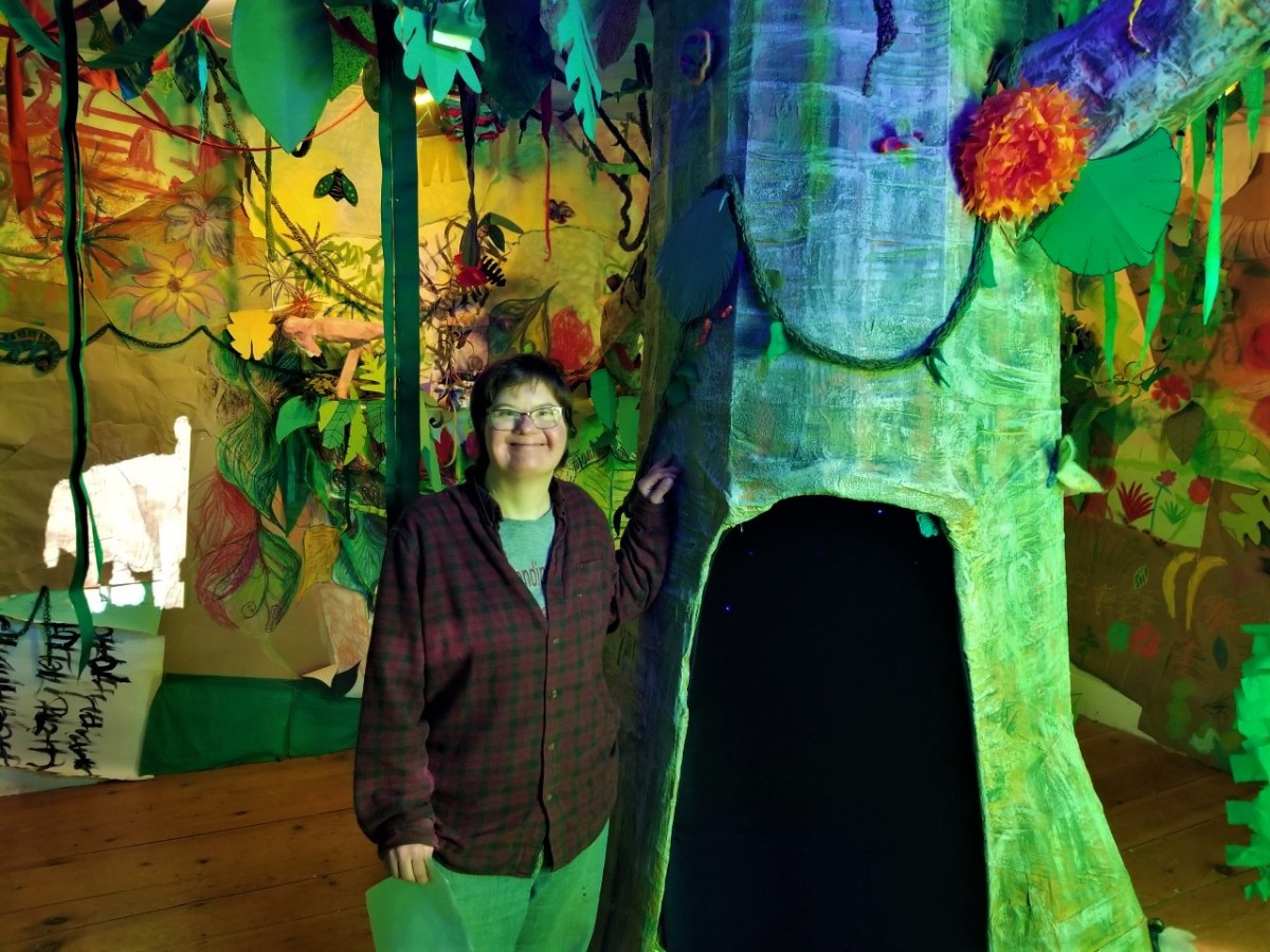 Artists spent the better part of a month building the room using paper mache, woodworking, drawing, sewing, tissue paper and more. All the animation and sound effects were also created by the artists.