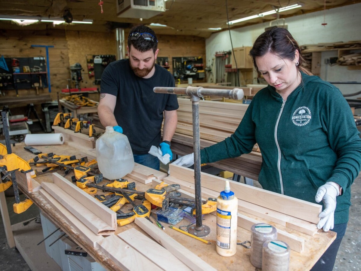 Ross and Carie Gauvin, owners of Rowe Station Woodworks, make 1,500-plus floating shelves a month and just hired their first employee last year to handle shipping, with more plans for growth in the works.