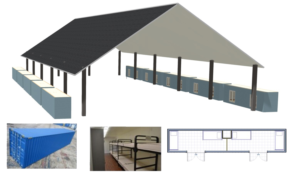 Hockey academy with cargo container dorms for The Colisée in Lewiston?