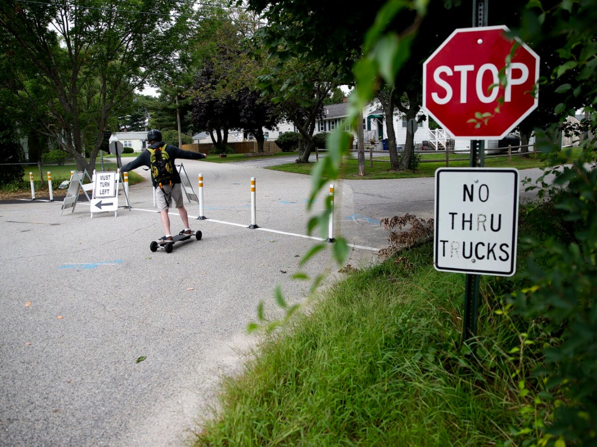 Temporary traffic-calming measures installed near Cash Corner in South Portland