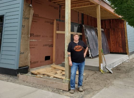 Ginger Cote says last winter’s government shutdown and unpredictable weather delayed construction of Big Babe’s Tavern in Knightville.