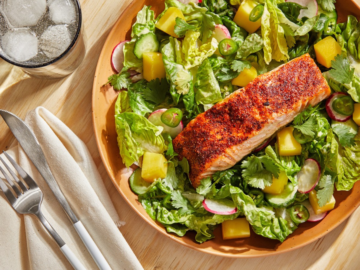 This salmon salad with mango vinaigrette brings sunshine to the table